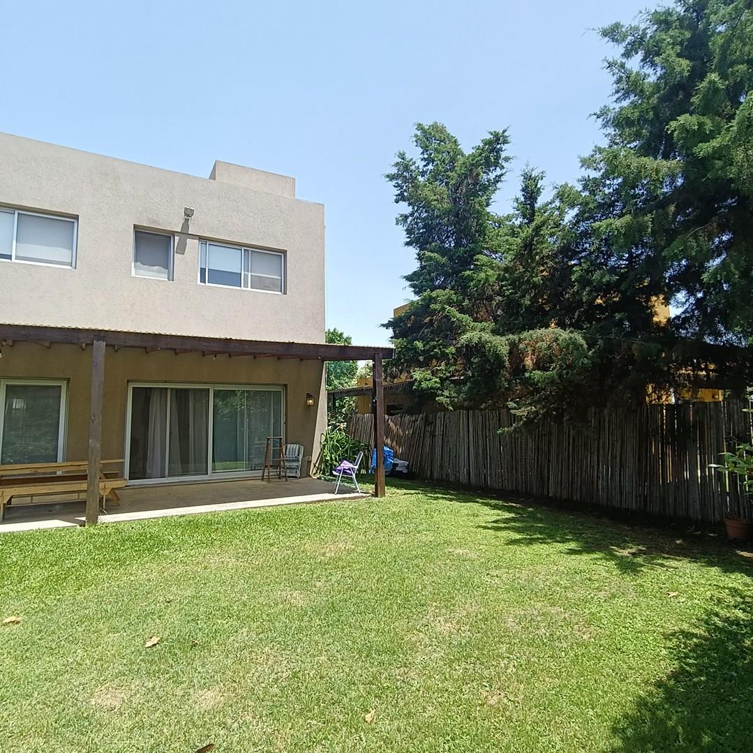 Lindísima Casa en alquiler en La Cañada se libera el 1 de febrero 2026. Casa en dos plantas sobre lote interno. Con espacio de guardado para dos autos sobre piso de cemento. Pb: Hall de ingreso con toilette de recepción, living comedor con chimenea integrado con cocina con barra desayunadora. Salida al exterior por puerta ventana hacia la galería, posee parrilla. Jardín con cerco vivo tupido. No tiene pileta. Pa: hall de distribución, dos habitaciones que comparten un baño completo. Ambas habitaciones poseen AA. Detalles constructivos: loza radiante. El barrio posee un amplio sum con galería, parrilla, espacio amplio de living comedor, baños, sauna, espacio de juegos para niños, pileta y canchas de tennis.