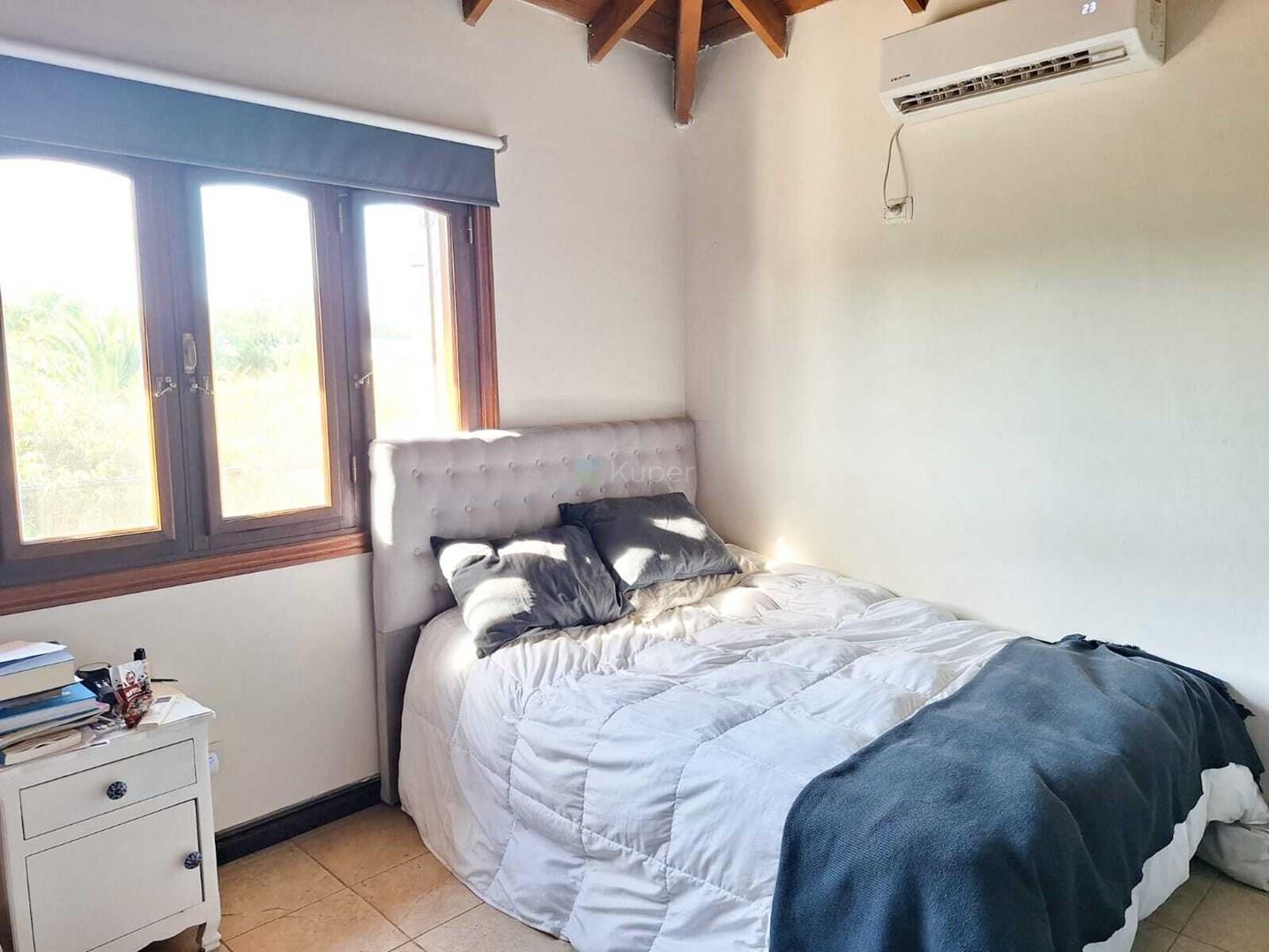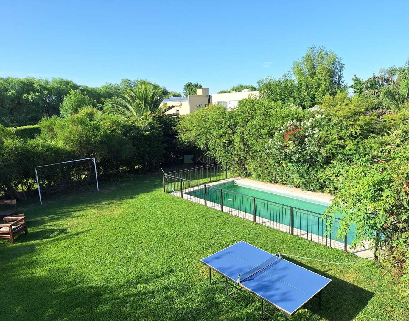 Lindísima casa en el barrio Santa Silvina, uno de los más buscados de Pilar por su excelente ubicación, su entorno tranquilo y familiar, y su imponente arboleda. Desarrollada sobre un lote de 824 m², la casa cuenta con 316 m² cubiertos, distribuidos en dos plantas. Posee calefacción por losa radiante y aire acondicionado en los ambientes principales, asegurando confort durante todo el año. Planta baja: Un cálido hall de recepción con toilette de cortesía da paso a un amplio y luminoso living, integrado a una gran sala de estar, con vistas abiertas hacia el jardín, ideales para disfrutar en familia. Cuenta además con un cómodo escritorio, que por sus dimensiones puede funcionar como dormitorio de huéspedes. El comedor se conecta con la cocina, completamente equipada y con excelente espacio de guardado. La misma dispone de comedor diario y salida directa a la galería, generando una fluida conexión entre el interior y el exterior, perfecta para la vida cotidiana. Completan esta planta un lavadero independiente y dormitorio de servicio. Planta alta: La master suite, amplia y luminosa, se destaca por sus vistas abiertas al jardín y a la pileta. Ofrece vestidor y salida a una terraza privada, ideal para disfrutar de la tranquilidad del entorno. En esta planta se encuentran además tres dormitorios con amplios placares, que comparten un baño completo. Exterior: Gran galería cubierta con sector de parrilla, pensada para disfrutar durante todo el año. Se complementa con una pileta revestida en venecitas, solárium, fogonero y un jardín completamente parquizado, que aporta privacidad, verde y una atmósfera única, convirtiéndose en el espacio más disfrutado de la casa. Al frente, espacio para el guardado de varios vehículos. Equipamiento: • Alquiler con o sin muebles. • Calefacción por losa radiante. • Aire acondicionado en todos los ambientes principales. • Pisos cerámicos que aportan calidez y confort. • Cochera semicubierta para dos vehículos. Una propiedad única, de grandes dimensiones, ambientes cómodos y excelente conexión con el exterior, ideal para vivir y disfrutar en familia. Sobre el barrio Santa Silvina: Se destaca por su cercanía a la Autopista Panamericana y a importantes centros comerciales, supermercados, hospitales, colegios y universidades. Ofrece un entorno seguro, familiar y muy tranquilo, ideal para quienes buscan calidad de vida durante todo el año.