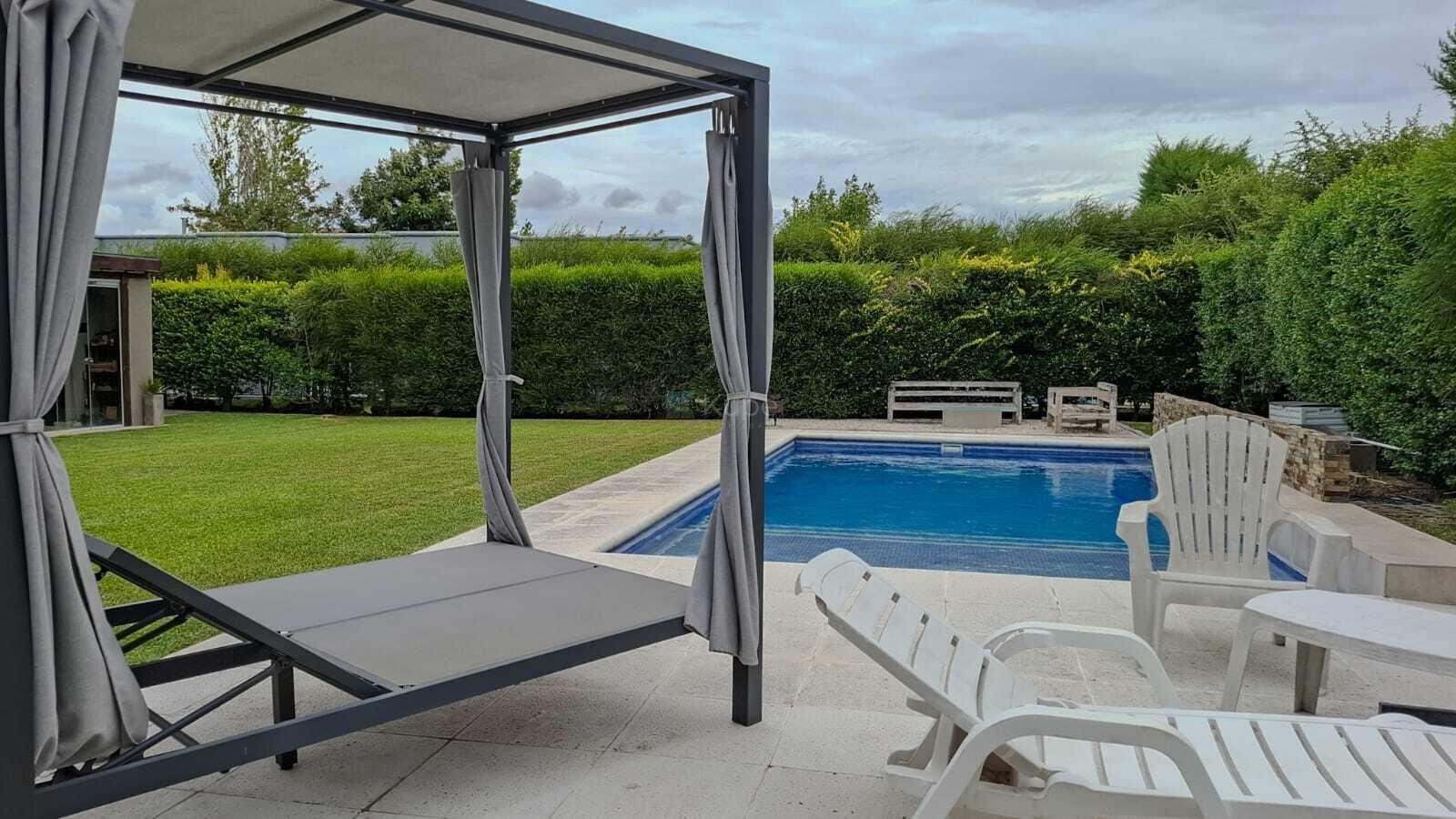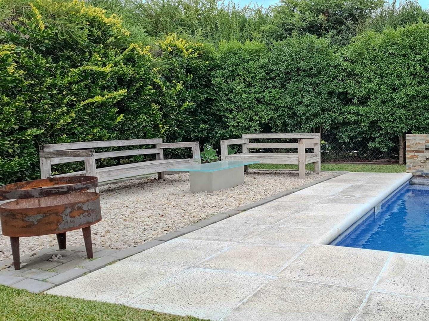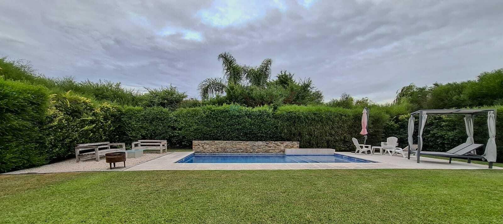 Excelente propiedad sobre lote interno en el Barrio San Francisco, Villanueva. Diseñada en una planta, posee amplios y luminosos ambientes. Importante living comedor de 7 x 5 con techos en doble altura y hogar de la línea Tromen. Se conecta a la cocina por gran abertura,- Cocina con mobiliario completo y ventanas con vista al frente de la propiedad. Toilette de recepción. El espacio privado se conecta por una puerta granero. Dos habitaciones con placares completos que comparten baño. Gran suite con vestidor y vista al jardín. Lavadero con acceso lateral. Dependencia de servicio con baño completo que a su vez, es baño de exterior. La galería, de 8 x 4, se encuentra cerrada con aberturas de vidrio estillo Reiki, que otorga un espacio más de reunión. Parrilla completa con cerramiento. Hermoso jardín con piscina de 8 x 4 con detalles de piedras y cascada. Espacio de fogonero. Pérgola exterior para tres autos y bicicletas. Calefacción por radiadores. Aire acondicionado en todos los ambientes, incluída la galería. Aberturas de aluminio. Impecable estado. Comercializa Ernesto Marcos Spolski [CMCPSI 6855; CUCICBA 8218] Domicilios: - Blvd. del Mirador 430, Terrazas de la Bahía 2, Depto. 301, Nordelta. - Godoy Cruz 3213 - Palermo - CABA - Argentina Las medidas, superficies y demás especificaciones consignadas en el presente aviso tienen carácter meramente estimativo y orientativo. Los valores definitivos surgirán de la correspondiente Escritura Traslativa de Dominio. Asimismo, las descripciones arquitectónicas, montos de expensas, tributos, servicios, imágenes y dimensiones de los inmuebles han sido suministrados por la parte propietaria, pudiendo no encontrarse actualizados al momento de la presente publicación, motivo por el cual podrían verificarse inexactitudes o divergencias respecto de los que resulten de las facturas, títulos o planos registrados del inmueble hasta el momento. Se deja expresamente establecido que la documentación necesaria será puesta a disposición de los interesados, quienes deberán efectuar las verificaciones pertinentes con anterioridad a la celebración de cualquier operación, ya sea por sí o a través de los profesionales que designen, requiriendo la documentación respaldatoria que corresponda.