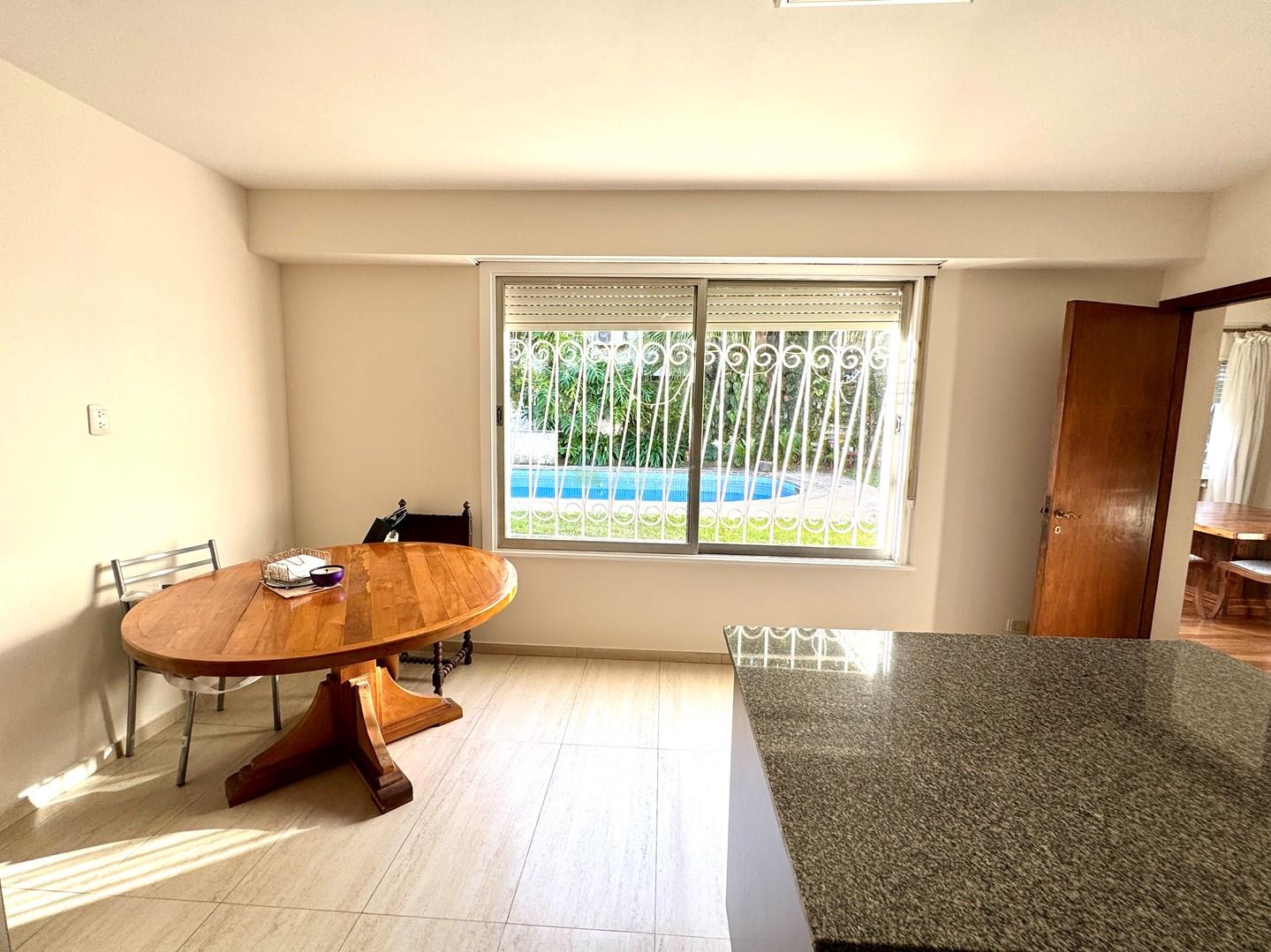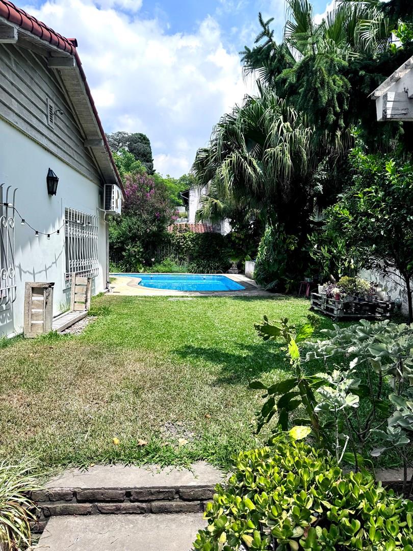 Muy linda casa entre vías y Libertador en Acassuso. Casi su totalidad en planta baja. Baños y cocina hechos a nuevo. Hall recibidora, living y comedor con ventanas al jardín, cocina con comedor diario con ventanal al jardín. Gran quincho con parrilla. Dos dormitorios en suite. Escritorio o tercer dormitorio en planta baja. Toilette de recepción. Sector de servicio. Dependencia con su baño. En Planta alta máster suite con vestidor y baño completo. Garage cubierto Pileta con filtro y venecitas. Calefacción por radiadores Cerca de todo. No te la pierdas. Comercializa Ernesto Marcos Spolski [CMCPSI 6855; CUCICBA 8218] Domicilios: - Blvd. del Mirador 430, Terrazas de la Bahía 2, Depto. 301, Nordelta. - Godoy Cruz 3213 - Palermo - CABA - Argentina
