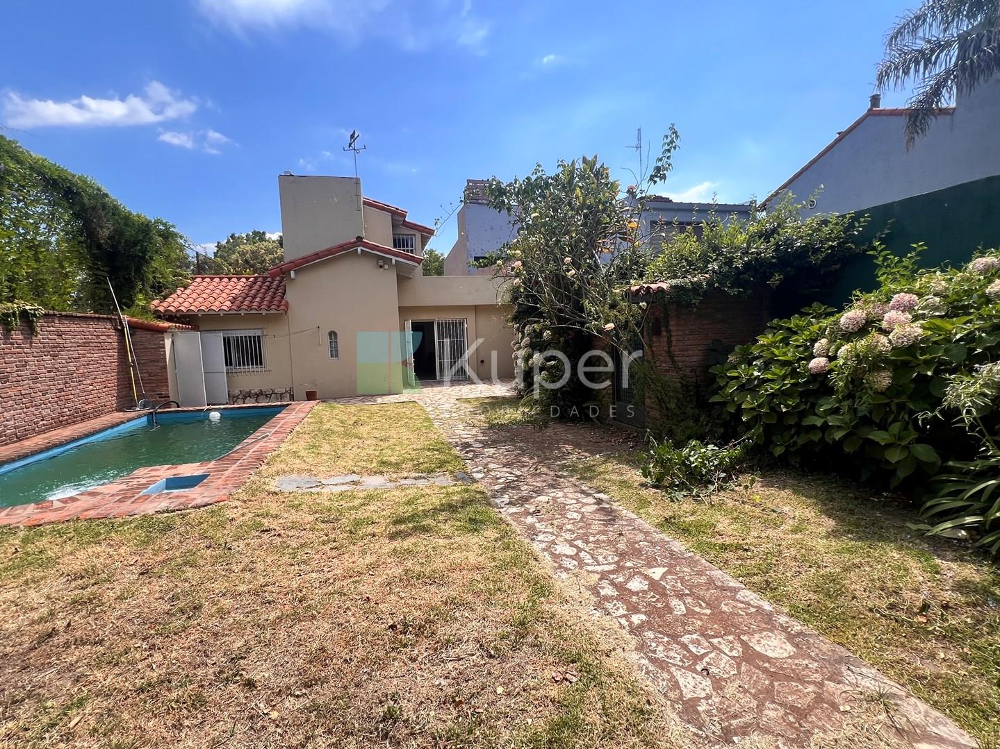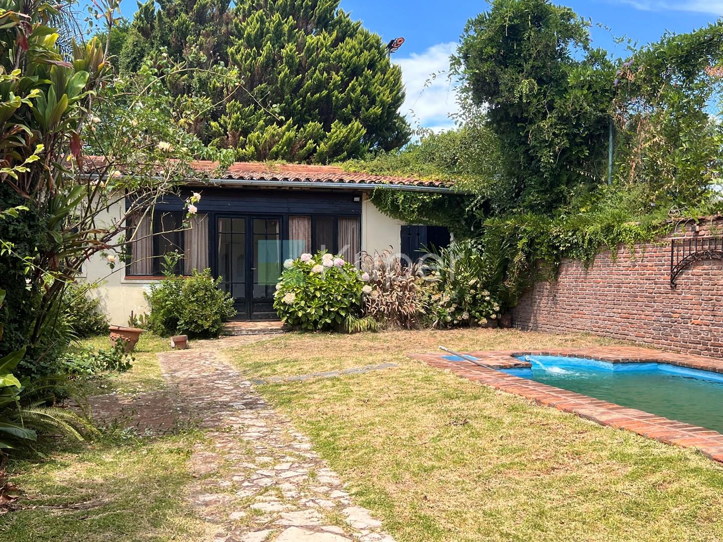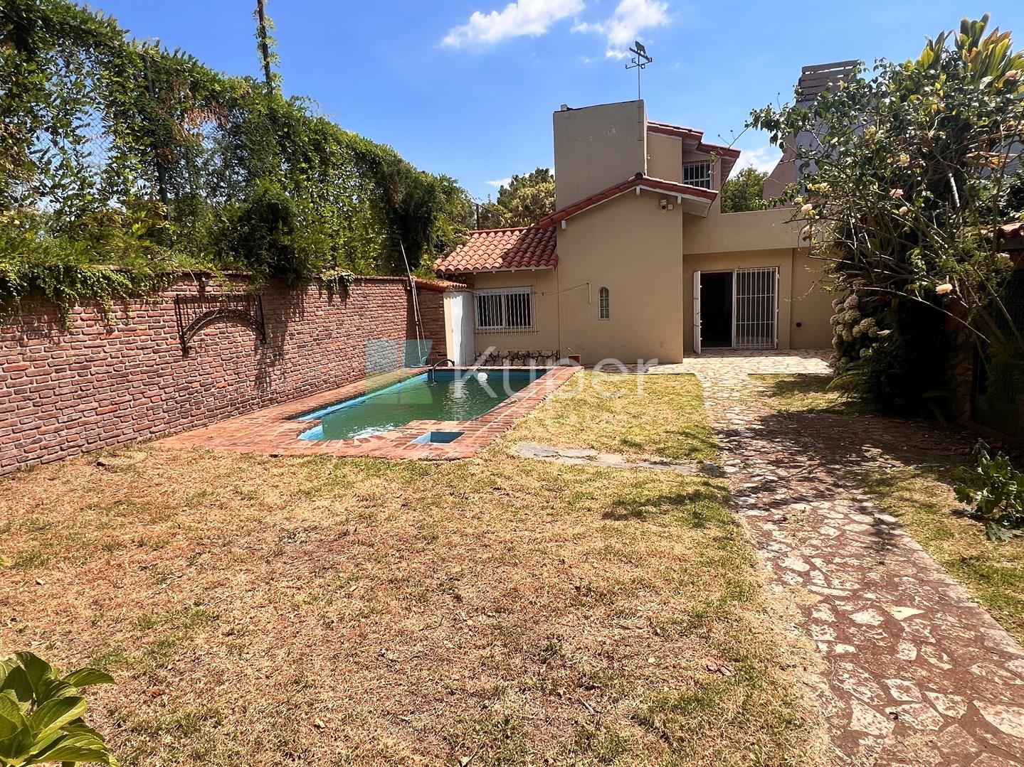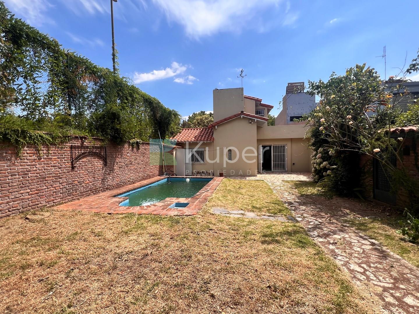 Muy lindo chalet de 4 habitaciones, desarrollado en dos plantas ubicado a 3 cuadras de Av. Santa Fe, de estilo clásico y tejas coloniales. Al ingresar a la propiedad por el jardín delantero, nos encontramos con un amplio living con chimenea y puerta de vidrio que separa este ambiente del gran comedor con salida al jardín La espaciosa cocina conecta por una barra con el comedor y a la habitación de servicio o escritorio con un baño independiente. Desde el living accedemos a través de una puerta al sector privado de la propiedad, donde encontramos 2 habitaciones con un baño completo que las asiste. En la planta alta, encontramos una gran habitación con salida a la terraza y baulera. La cochera cubierta para dos autos, tiene acceso directo al comedor. En el exterior encontramos un hermoso jardín parquizado con pileta de natación y parrilla, además, cuenta con un sector ideal para taller o estudio independiente con su propio baño o quincho. Comercializa Ernesto Marcos Spolski [CMCPSI 6855; CUCICBA 8218] Domicilios: - Blvd. del Mirador 430, Terrazas de la Bahía 2, Depto. 301, Nordelta. - Godoy Cruz 3213 - Palermo - CABA - Argentina