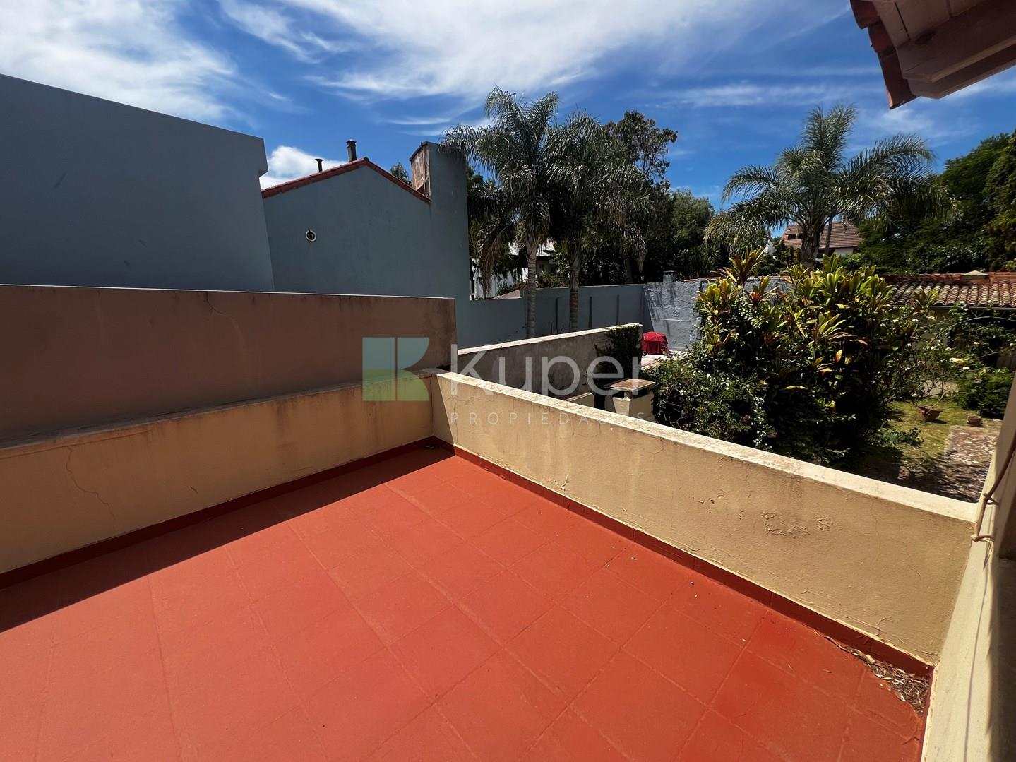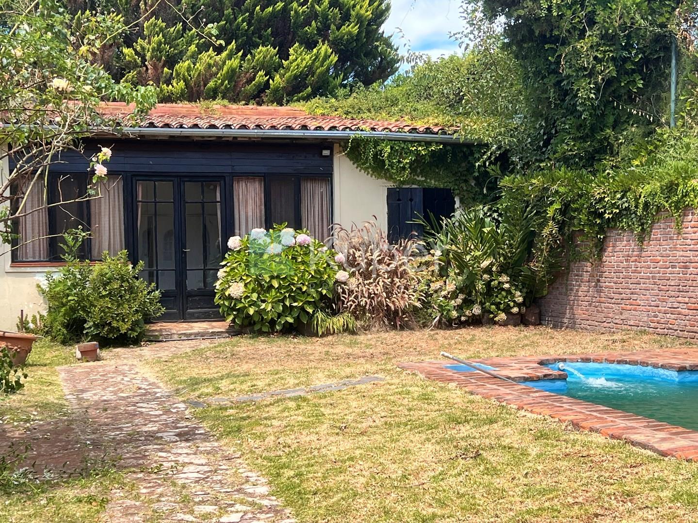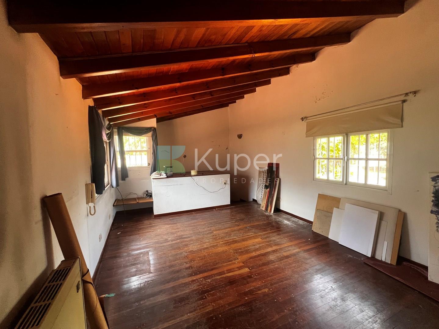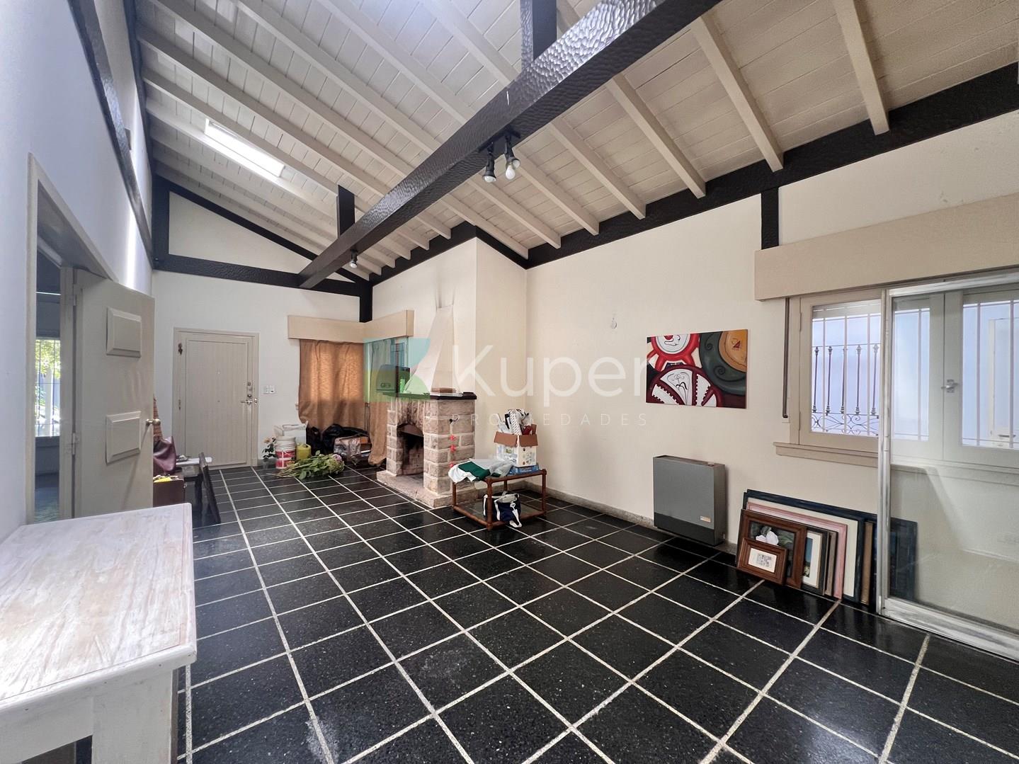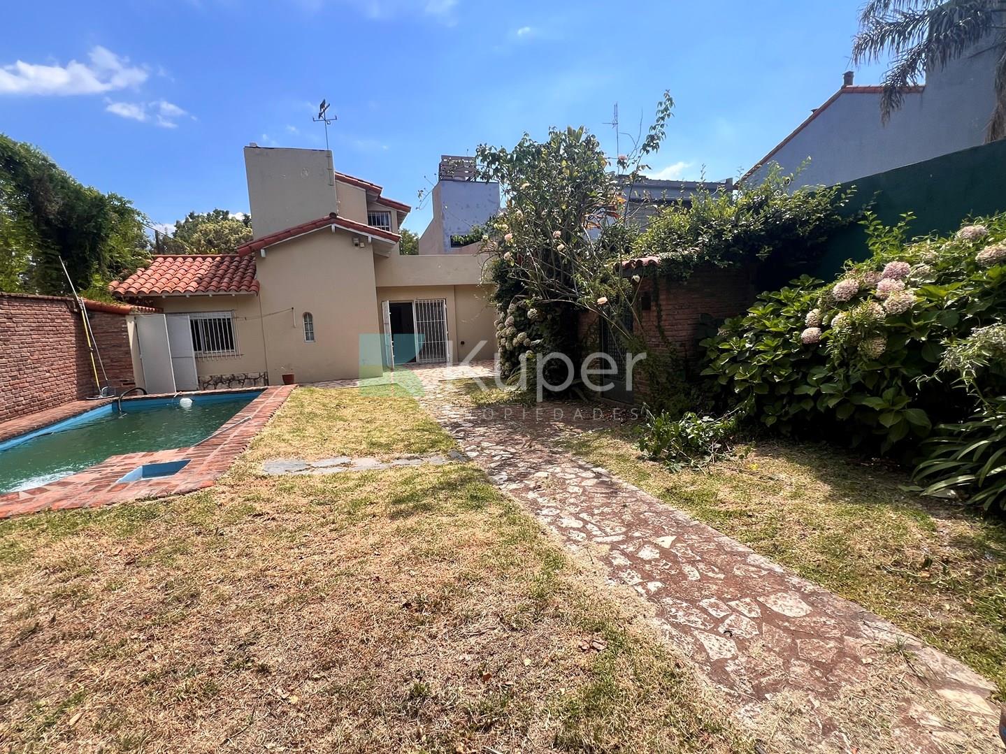 Muy lindo chalet de 4 habitaciones, desarrollado en dos plantas ubicado a 3 cuadras de Av. Santa Fe, de estilo clásico y tejas coloniales. Al ingresar a la propiedad por el jardín delantero, nos encontramos con un amplio living con chimenea y puerta de vidrio que separa este ambiente del gran comedor con salida al jardín La espaciosa cocina conecta por una barra con el comedor y a la habitación de servicio o escritorio con un baño independiente. Desde el living accedemos a través de una puerta al sector privado de la propiedad, donde encontramos 2 habitaciones con un baño completo que las asiste. En la planta alta, encontramos una gran habitación con salida a la terraza y baulera. La cochera cubierta para dos autos, tiene acceso directo al comedor. En el exterior encontramos un hermoso jardín parquizado con pileta de natación y parrilla, además, cuenta con un sector ideal para taller o estudio independiente con su propio baño o quincho. Comercializa Ernesto Marcos Spolski [CMCPSI 6855; CUCICBA 8218] Domicilios: - Blvd. del Mirador 430, Terrazas de la Bahía 2, Depto. 301, Nordelta. - Godoy Cruz 3213 - Palermo - CABA - Argentina