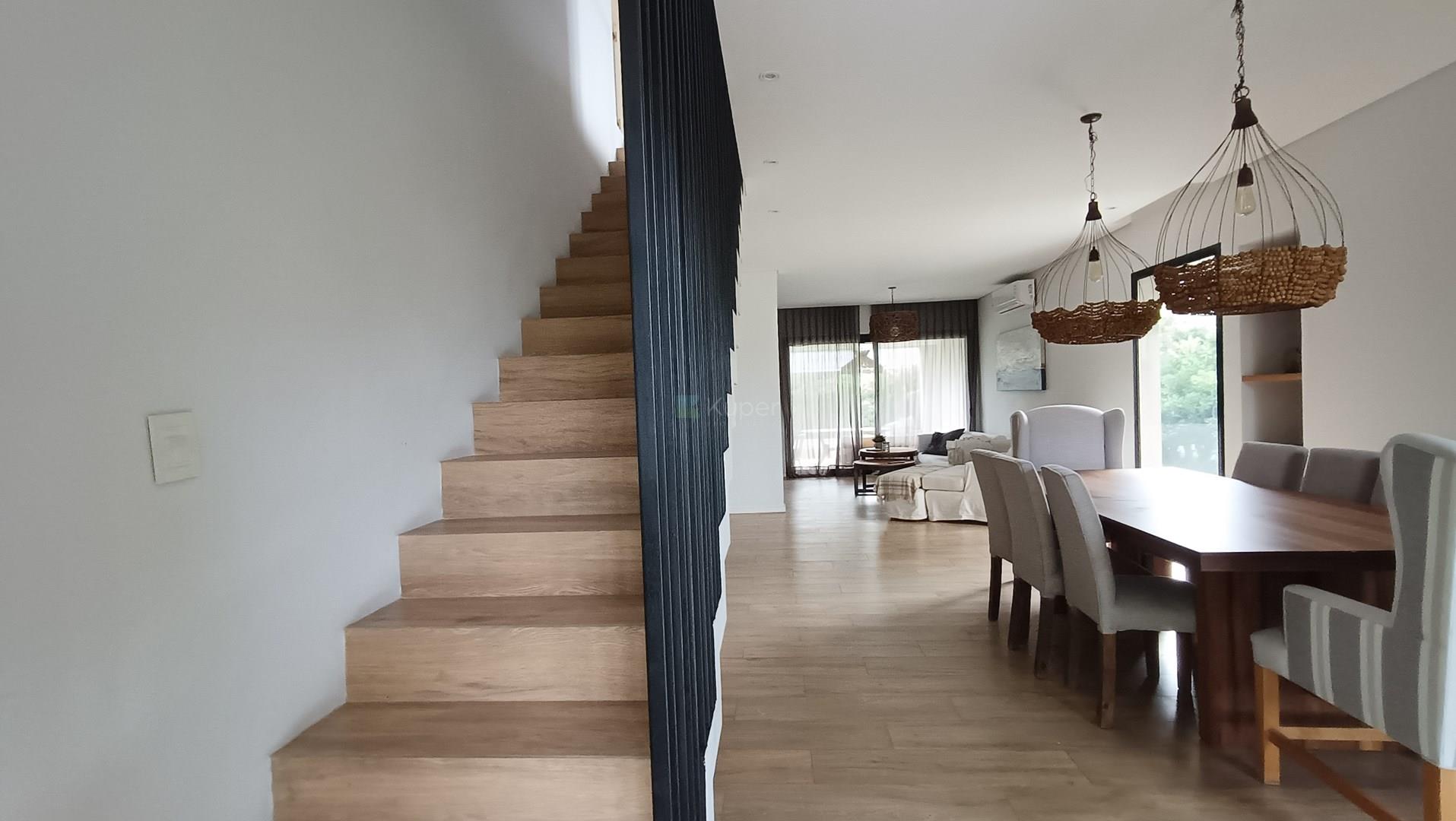 EXCELENTE CASA EN DOS PLANTAS. PB: HALL DE RECEPCIÓN CON PLACARD, LIVING COMEDOR. TOILETTE. AMPLIA COCINA CON ISLA. DEPENDENCIA DE SERVICIO CON BAÑO SIRVE TAMBIÉN COMO BAÑO DE PILETA. PA: HALL DE DITRIBUCIÓN / PLAYROOM. SUIT PRINCIPAL AMPLIA CON VESTIDOR Y BAÑO COMPLETO CON DOBLE BACHA. DOS DORMITORIOS CON BAÑO COMPARTIMENTADO. EXTERIOR: COCHERA CUBIERTA PARA 1 AUTO CON INGRESO POR PARTE DE SERVICIO Y HACIA LA GALERÍA. LUGAR DE GUARDADO, PILETA.
