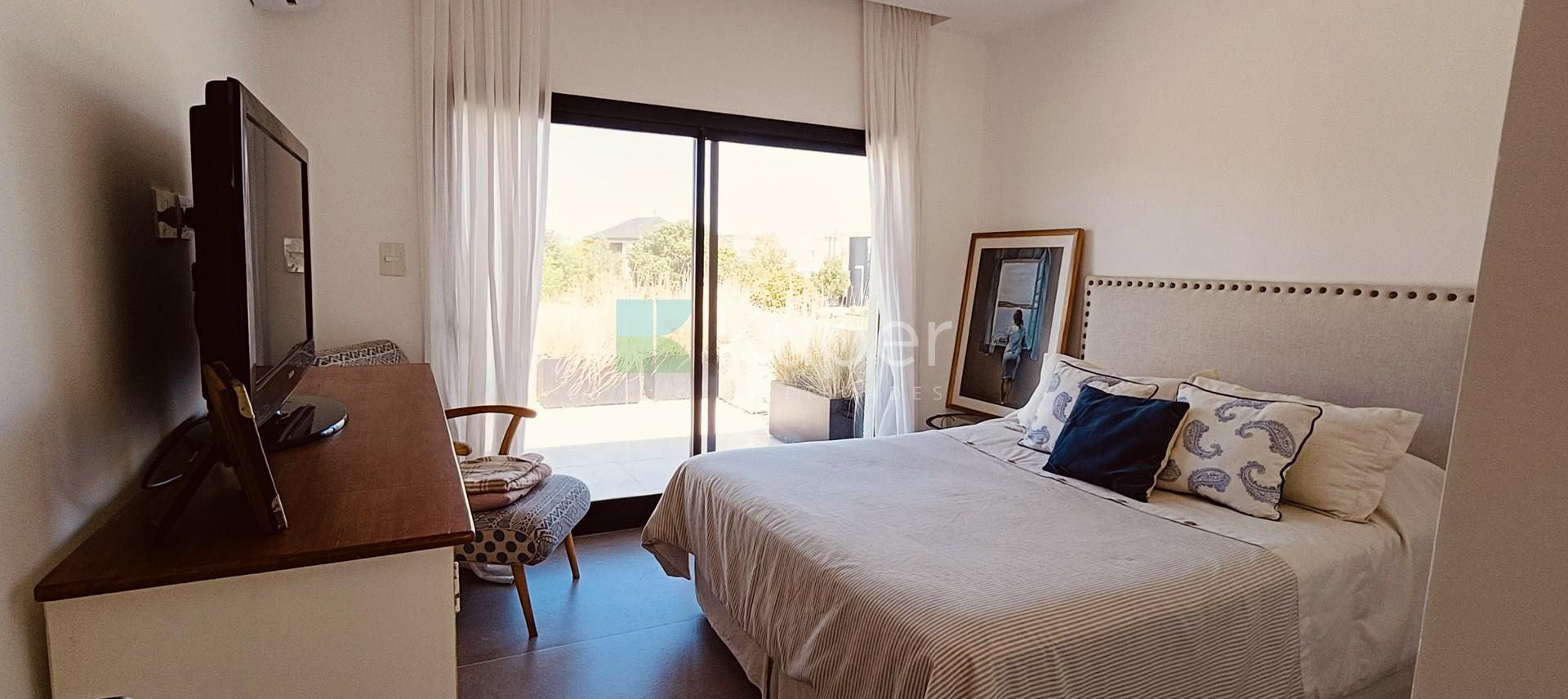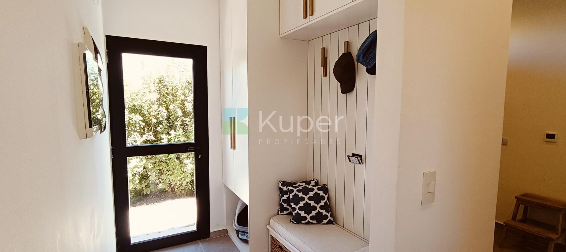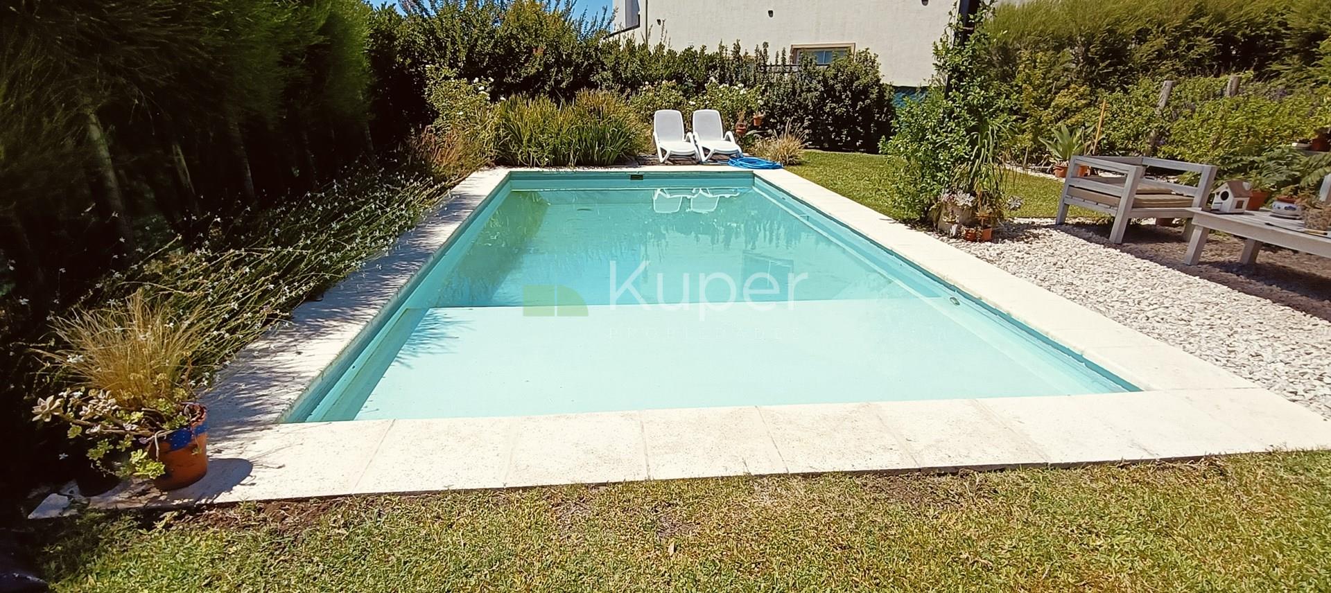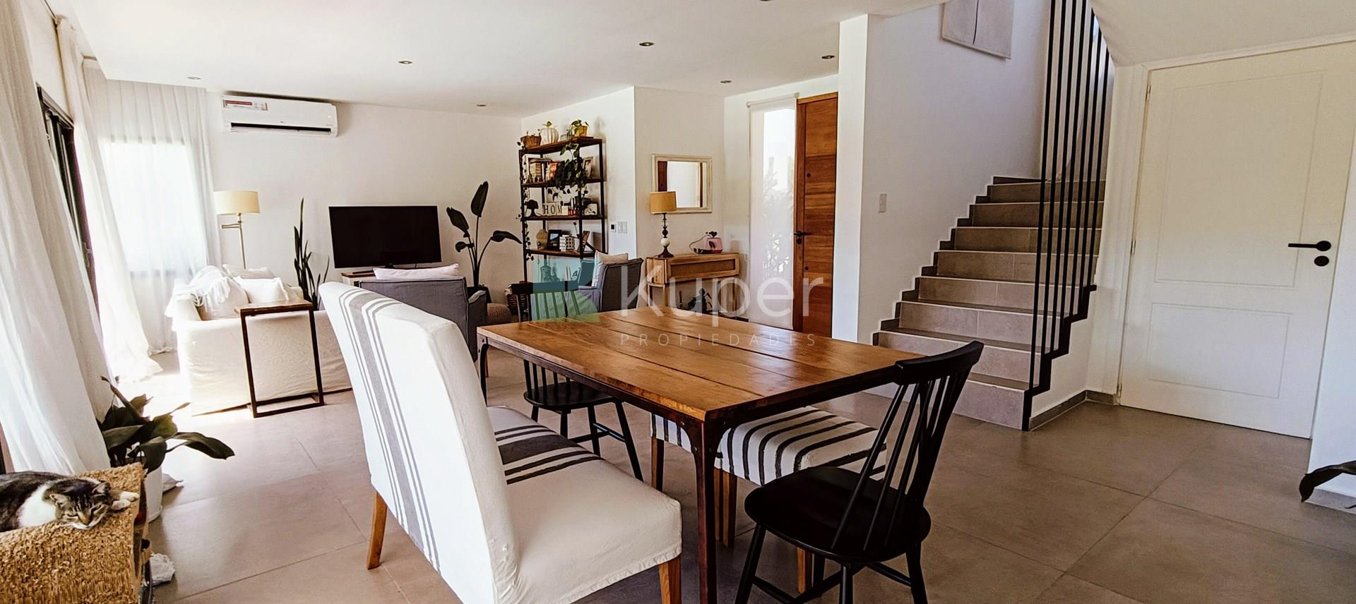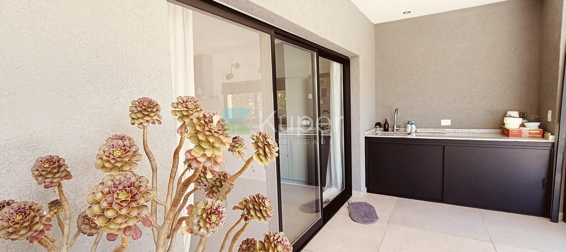 Muy linda casa en venta diseñada con buen gusto y en cada detalle, se destaca por su luminosidad y su conexión con la naturaleza. Al ingresar, te recibirán espacios amplios y bien iluminados, con grandes ventanales que permiten que la luz natural sea suficiente durante el día. Pb: living comedor integrado a la cocina con la posibilidad de cerrar el ambiente con una puerta corrediza. Toilette. Lugar de guardado bajo escalera. Tiene ingreso por la parte de servicio y por el estacionamiento techado. Lavadero, escritorio. Pa: Suite principal con vestidor y baño completo, linda terraza que da al jardín - pileta. 2 dormitorios que comparten un baño. Ambos dan a una terraza. Exterior: amplia galería con parrilla y bacha con pérgola que extiende la misma. Riego por aspersión. El toque verde está presente gracias a las plantas que decoran el exterior, creando un ambiente fresco y acogedor. La cocina es funcional y sofisticada, ideal para disfrutar de momentos en familia. Características de construcción: aa frío /calor, calefacción por losa radiante eléctrica. Pisos de porcelanato, aberturas doble vidrio.