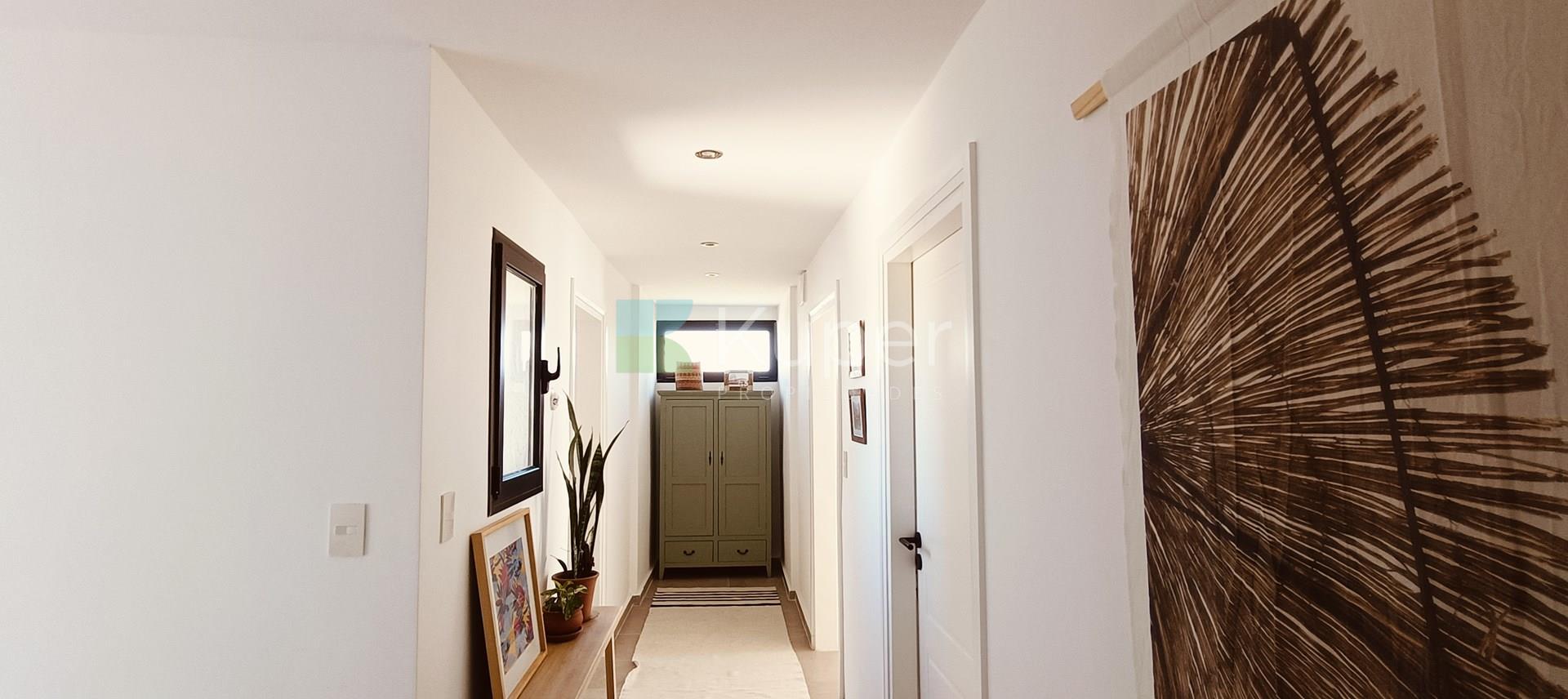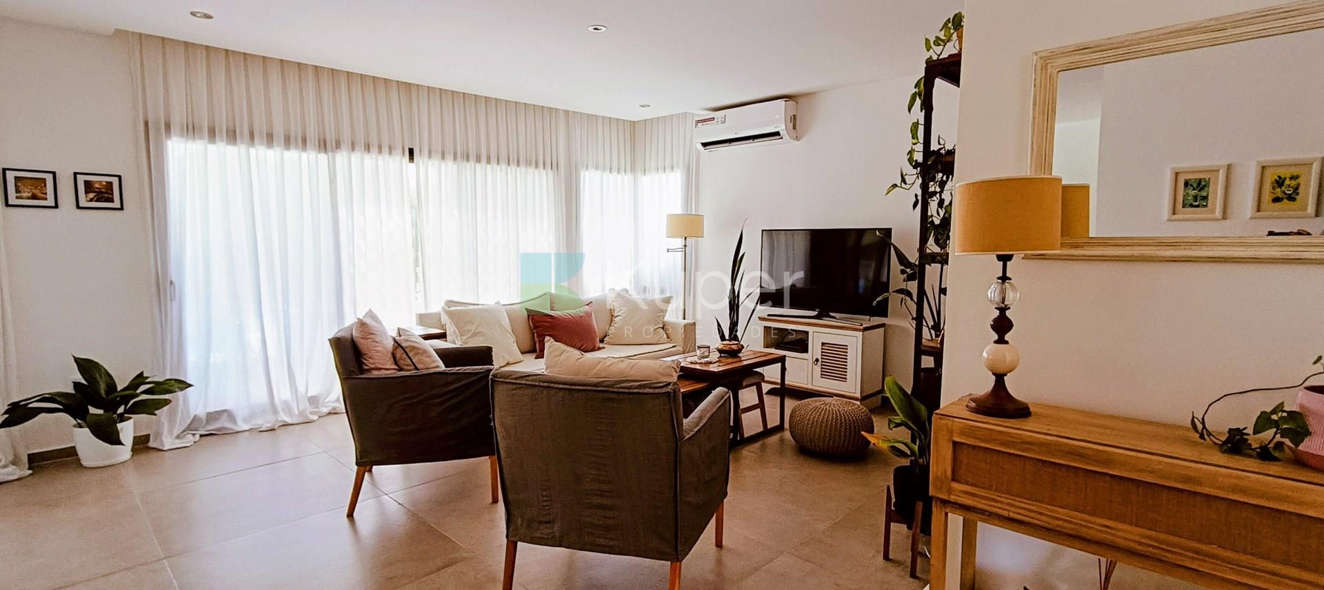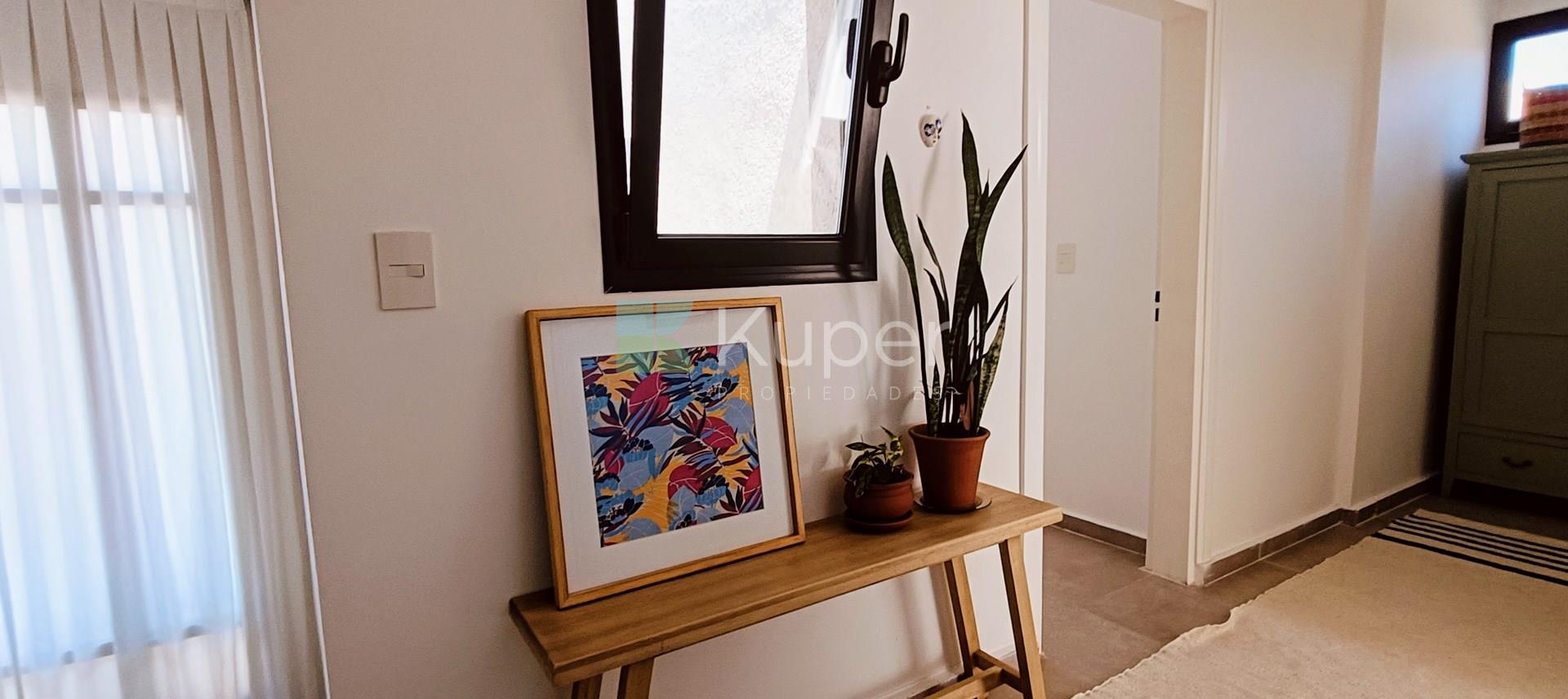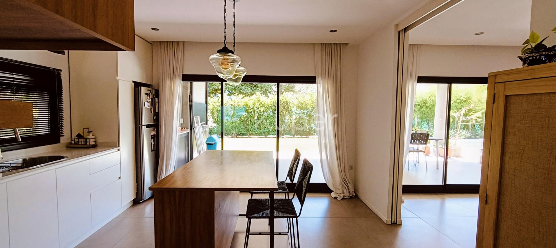 Muy linda casa en venta diseñada con buen gusto y en cada detalle, se destaca por su luminosidad y su conexión con la naturaleza. Al ingresar, te recibirán espacios amplios y bien iluminados, con grandes ventanales que permiten que la luz natural sea suficiente durante el día. Pb: living comedor integrado a la cocina con la posibilidad de cerrar el ambiente con una puerta corrediza. Toilette. Lugar de guardado bajo escalera. Tiene ingreso por la parte de servicio y por el estacionamiento techado. Lavadero, escritorio. Pa: Suite principal con vestidor y baño completo, linda terraza que da al jardín - pileta. 2 dormitorios que comparten un baño. Ambos dan a una terraza. Exterior: amplia galería con parrilla y bacha con pérgola que extiende la misma. Riego por aspersión. El toque verde está presente gracias a las plantas que decoran el exterior, creando un ambiente fresco y acogedor. La cocina es funcional y sofisticada, ideal para disfrutar de momentos en familia. Características de construcción: aa frío /calor, calefacción por losa radiante eléctrica. Pisos de porcelanato, aberturas doble vidrio.