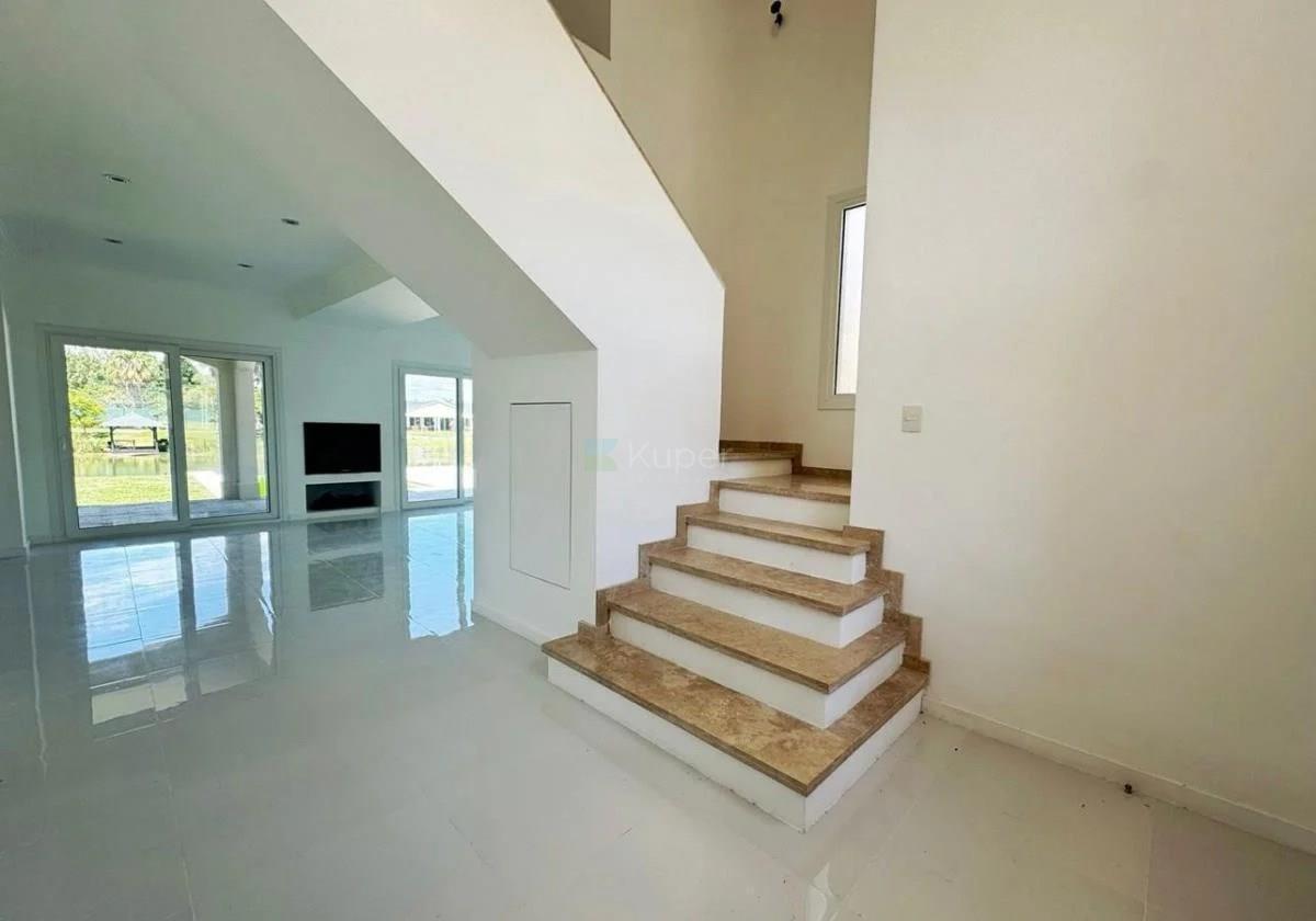Venta de casa en Glorietas Nordelta Planta baja: cuenta con estacionamiento techado para tres autos. Hall de recepción. Amplio living-comedor con cocina integrada y equipada con gran isla con horno y anafe marca Whirlpool. Salida a galeria con parrilla. Lavadero con acceso independiente y dependencia de servicio o escritorio con baño completo. Piscina y jardín con grama bahiana y riego automático. Planta alta: Amplio hall de distribución, dos dormitorios con placard y baño compartido. Suite con gran vestidor y baño con hidro. Calefacción por losa radiante y AA en todos los ambientes. Aberturas de PVC con DVH marca Rehaus, griferías FV, electricidad trifásica. Casa totalmente renovada, con materiales de primera línea. Diseño moderno y funcionalTodos materiales de primera calidad. Comercializa Ernesto Marcos Spolski [CMCPSI 6855; CUCICBA 8218] Domicilios: - Blvd. del Mirador 430, Terrazas de la Bahía 2, Depto. 301, Nordelta. - Godoy Cruz 3213 - Palermo - CABA - Argentina . . Las medidas, superficies y demás especificaciones consignadas en el presente aviso tienen carácter meramente estimativo y orientativo. Los valores definitivos surgirán de la correspondiente Escritura Traslativa de Dominio. Asimismo, las descripciones arquitectónicas, montos de expensas, tributos, servicios, imágenes y dimensiones de los inmuebles han sido suministrados por la parte propietaria, pudiendo no encontrarse actualizados al momento de la presente publicación, motivo por el cual podrían verificarse inexactitudes o divergencias respecto de los que resulten de las facturas, títulos o planos registrados del inmueble hasta el momento. Se deja expresamente establecido que la documentación necesaria será puesta a disposición de los interesados, quienes deberán efectuar las verificaciones pertinentes con anterioridad a la celebración de cualquier operación, ya sea por sí o a través de los profesionales que designen, requiriendo la documentación respaldatoria que corresponda.