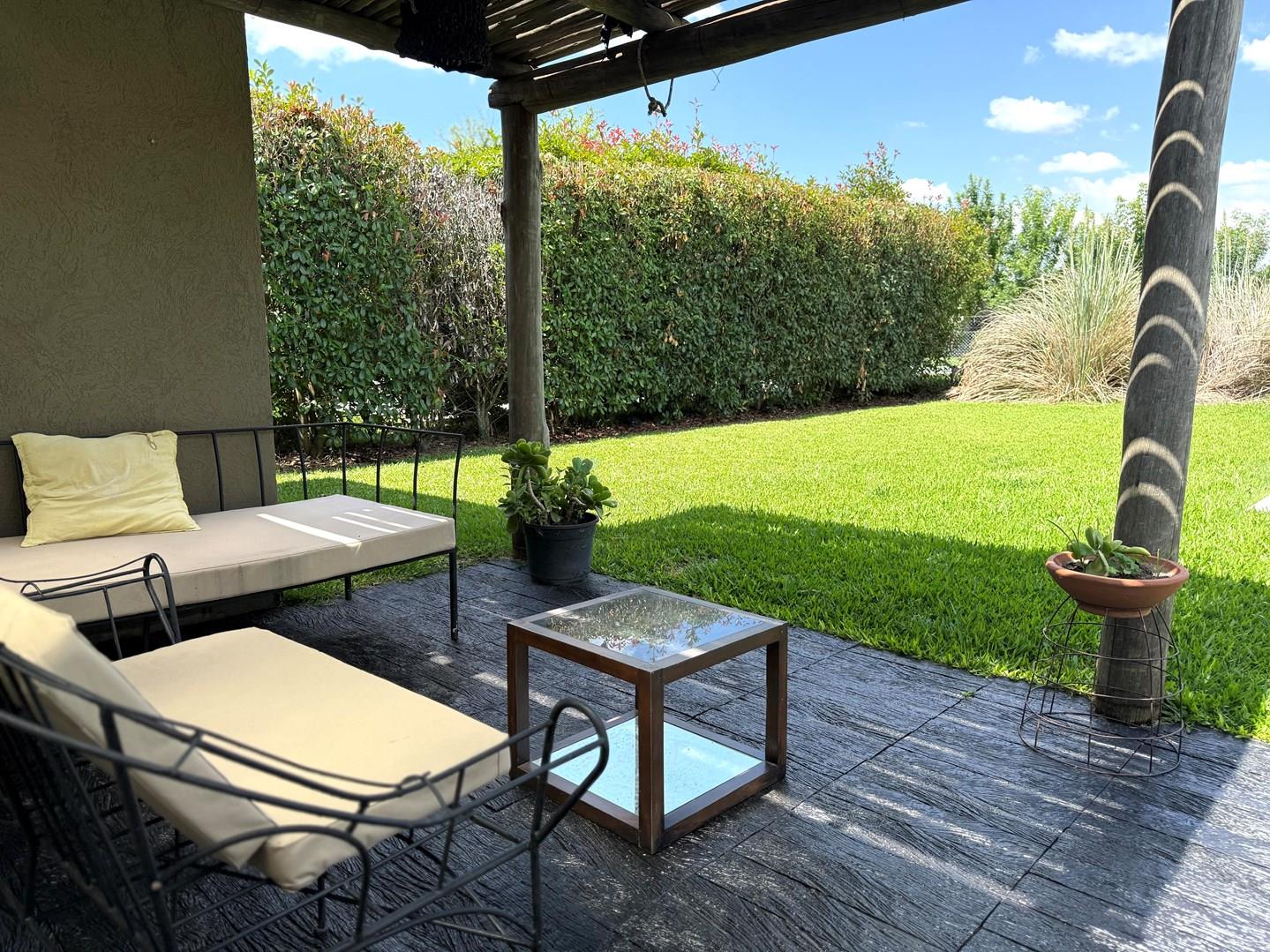 CASA EN VENTA EN BARRIO SAN ALFONSO, PILAR DEL ESTE. Lote 460 m² Superficie cubierta:130m² Semicubierto: 5,37 m2 Descripcion: Ingreso puerta principal de hierro en altura. Frente de la casa con vidrios repartidos. * Living / comedor con un lindo hogar con sus laterales convinando puertas de madera en altura con vidrio repartido con salida a la galería. Cuenta con A/A * Cocina integrada con barra desayunadora con mesada de vidrio. Características en piso con detalle de ceramicos negros. * 2 dormitorios con placard empotrados. con A/A cada uno * 1 baños completos con ducha. PA: *1 dormitorio en suite con baño integrado. cuenta con A/A Exterior *Jardín con grama bahiana *Pileta de 7 x 3 con borde atermico. *Galería con cerramiento y mosquitero. Techo de Policarbonato transparente. *Parrilla completa con bacha y mesada larga con lugar debajo para lavarropas. *Cochera para 2 autos Características 15 años de antigüedad Muy luminosa Orientación: Oeste NO ES APTO CREDITO HIPOTECARIO Vendedor Inmobiliario Marisol Fullana San Alfonso, es uno de los primeros Barrios a los que llegamos al ingresar a Pilar del Este. Se encuentra consolidado. Zona alta no inundable, con seguridad privada interna las 24 hs. Viviendas permanentes. Control perimetral mediante cerco eléctrico, sensor de movimiento y cámaras de seguridad en todo el predio. Cuenta con una plaza de juegos para niños. Comercializa Ernesto Marcos Spolski [CMCPSI 6855; CUCICBA 8218] Domicilios: - Blvd. del Mirador 430, Terrazas de la Bahía 2, Depto. 301, Nordelta. - Godoy Cruz 3213 - Palermo - CABA - Argentina . . Las medidas, superficies y demás especificaciones consignadas en el presente aviso tienen carácter meramente estimativo y orientativo. Los valores definitivos surgirán de la correspondiente Escritura Traslativa de Dominio. Asimismo, las descripciones arquitectónicas, montos de expensas, tributos, servicios, imágenes y dimensiones de los inmuebles han sido suministrados por la parte propietaria, pudiendo no encontrarse actualizados al momento de la presente publicación, motivo por el cual podrían verificarse inexactitudes o divergencias respecto de los que resulten de las facturas, títulos o planos registrados del inmueble hasta el momento. Se deja expresamente establecido que la documentación necesaria será puesta a disposición de los interesados, quienes deberán efectuar las verificaciones pertinentes con anterioridad a la celebración de cualquier operación, ya sea por sí o a través de los profesionales que designen, requiriendo la documentación respaldatoria que corresponda.