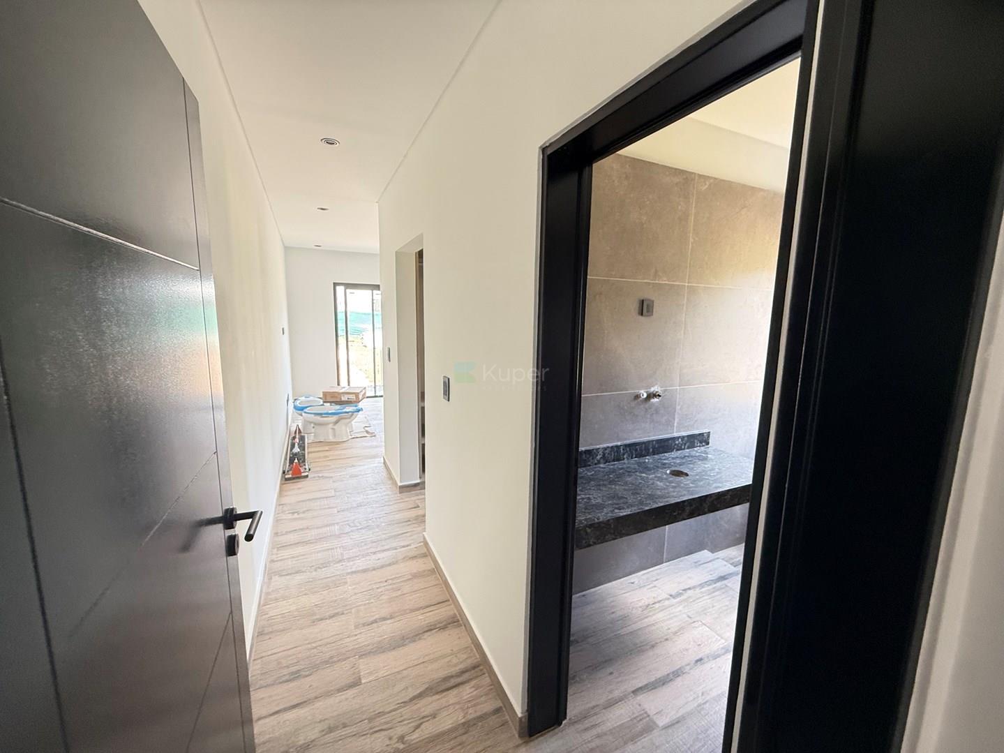 VENTA CASA A ESTRENAR - 3 DORMITORIOS + ESCRITORIO Y PILETA. BARRIO SAN PABLO, PILAR DESCRIPCIÓN: *Recepción con hall de entrada- Puerta de madera * Espacioso living-comedor con vista al jardin * Cocina integrada con barra desayunadora. *Toilette de recepción * Lavadero independiente con salida lateral al garage y ingreso a cocina. * 2 dormitorios con placard con interiores y frente, * Baño con bañera que comparten los 2 dormitorios. * Escritorio / playroom * Suite con vestidor , baño con ducha y salida al jardín interno. Exterior: *Galería con parrilla, mesada y bacha. Preparado para colocar cerramientos de vidrio. Pre - instalación de aire acondicionado. *Pileta de 7 x 3 con solarium ( pintada) Detalles de construcción: Aberturas de aluminio con doble vidrio hermético (DVH). Mosquiteros Pisos de porcelanato simil madera en todos los ambientes Calefacción por losa radiante y caldera dual Pre instalación de A/A en todos los ambientes Griferías y terminaciones de primera línea Agendar visita, Vendedor Marisol Fullana Kuper propiedades Barrio San Pablo: Ubicado a minutos del Hospital Austral y rodeado de servicios: centros comerciales, colegios, universidades, supermercados, y más. El barrio cuenta con todos los servicios subterráneos (gas, agua, electricidad y cloacas), calles asfaltadas con cordón cuneta y seguridad 24 horas. Amenities: 2 canchas de tenis, cancha de fútbol, Próximamente canchas de paddle, SUM y plaza de juegos infantiles Dos accesos: por Leandro N. Alem o Saraví. Comercializa Ernesto Marcos Spolski [CMCPSI 6855; CUCICBA 8218] Domicilios: - Blvd. del Mirador 430, Terrazas de la Bahía 2, Depto. 301, Nordelta. - Godoy Cruz 3213 - Palermo - CABA - Argentina . . Las medidas, superficies y demás especificaciones consignadas en el presente aviso tienen carácter meramente estimativo y orientativo. Los valores definitivos surgirán de la correspondiente Escritura Traslativa de Dominio. Asimismo, las descripciones arquitectónicas, montos de expensas, tributos, servicios, imágenes y dimensiones de los inmuebles han sido suministrados por la parte propietaria, pudiendo no encontrarse actualizados al momento de la presente publicación, motivo por el cual podrían verificarse inexactitudes o divergencias respecto de los que resulten de las facturas, títulos o planos registrados del inmueble hasta el momento. Se deja expresamente establecido que la documentación necesaria será puesta a disposición de los interesados, quienes deberán efectuar las verificaciones pertinentes con anterioridad a la celebración de cualquier operación, ya sea por sí o a través de los profesionales que designen, requiriendo la documentación respaldatoria que corresponda.