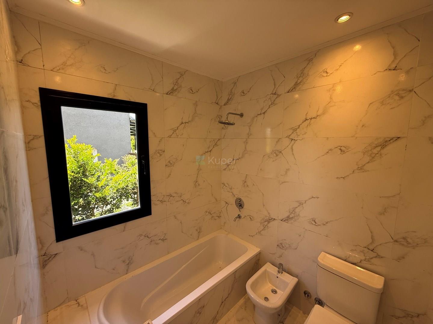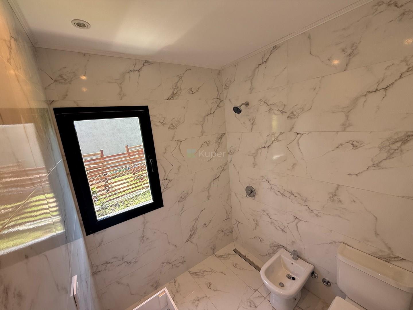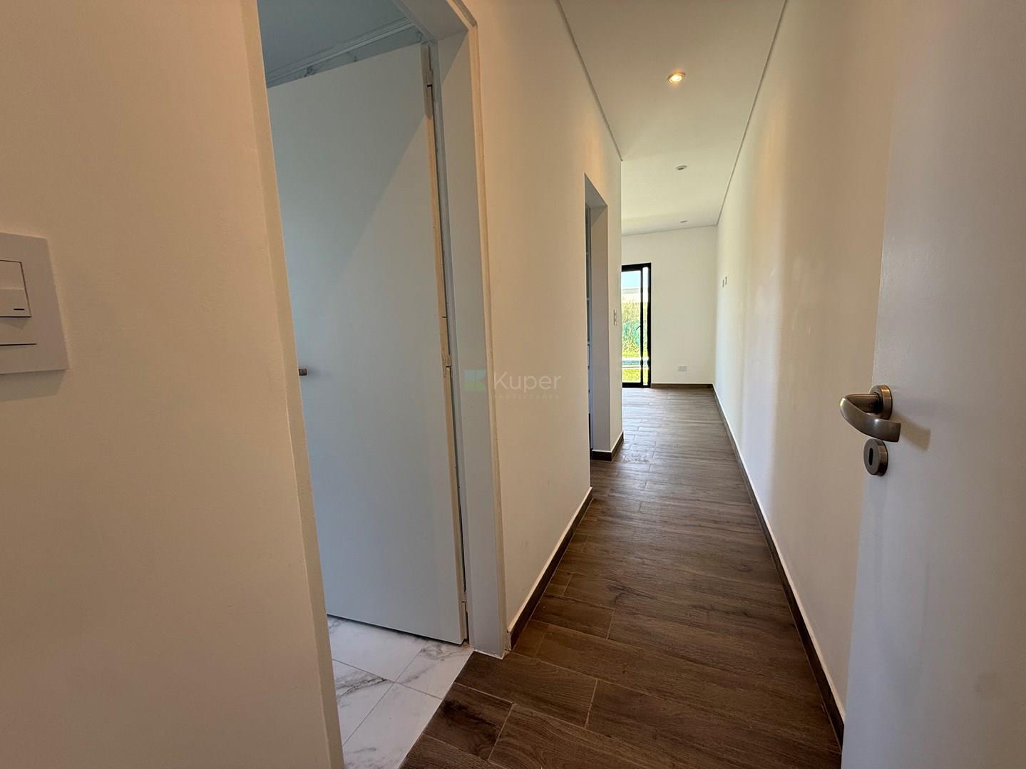 VENTA CASA CON PILETA A ESTRENAR EN BARRIO SAN RAMON, PILAR DEL ESTE 3 DORMITORIOS + Espacio de Oficina DESARROLLADA EN 1 PLANTA CON PILETA. Lote: 543 mtrs Superficia cubierta: 131 m2 Semicubierto: 21 m2 Estilo moderno y funcional para disfrutar en familia. Distribución ; *Hall de ingreso con vista al jardín. * Cocina con muebles alto y bajo mesada, también se encuentra una isla con muebles para mas lugar de guardo. * Lavadero que conecta desde la cocina o ingreso del exterior garaje. * living- comedor con vista al jardín con ventanas que se abren todas conectando la galería. * Toilette de recepción. * Espacio de escritorio, ideal para home office o estudio. El sector privado está compuesto por tres dormitorios: * Principal en suite con vestidor, baño con ducha y ventana en dormitorio con salida al jardín. * Dos dormitorios comparten un baño completo. Exterior : *Galería con parrilla, ideal para disfrutar del aire libre y sector de bacha con mesada. *Pileta revestida con piedra bali con luces . * Parque con grama Bahiana Espacio para pérgola para autos (pérgola opcional, no incluida en el precio). Entre sus características constructivas se destacan: Techo de losa. Aberturas de aluminio con doble vidrio hermético (DVH). Calefacción por losa radiante. Preinstalación para aires acondicionados en todos los ambientes. Consultame para visitarla, Vendedor Inmobiliario Marisol Fullana Inmobiliaria Kuper Propiedades, corredor inmobiliario Ernesto Marcos Spolski, Matrícula CMCPSI 6855, CUCIBA 8218 Comercializa Ernesto Marcos Spolski [CMCPSI 6855; CUCICBA 8218] Domicilios: - Blvd. del Mirador 430, Terrazas de la Bahía 2, Depto. 301, Nordelta. - Godoy Cruz 3213 - Palermo - CABA - Argentina . . Las medidas, superficies y demás especificaciones consignadas en el presente aviso tienen carácter meramente estimativo y orientativo. Los valores definitivos surgirán de la correspondiente Escritura Traslativa de Dominio. Asimismo, las descripciones arquitectónicas, montos de expensas, tributos, servicios, imágenes y dimensiones de los inmuebles han sido suministrados por la parte propietaria, pudiendo no encontrarse actualizados al momento de la presente publicación, motivo por el cual podrían verificarse inexactitudes o divergencias respecto de los que resulten de las facturas, títulos o planos registrados del inmueble hasta el momento. Se deja expresamente establecido que la documentación necesaria será puesta a disposición de los interesados, quienes deberán efectuar las verificaciones pertinentes con anterioridad a la celebración de cualquier operación, ya sea por sí o a través de los profesionales que designen, requiriendo la documentación respaldatoria que corresponda.