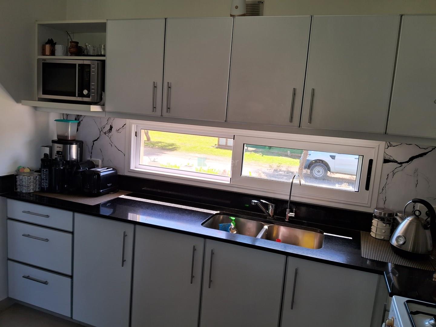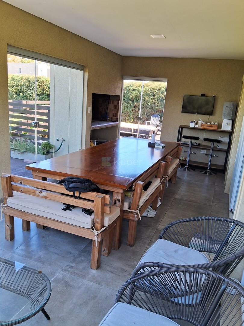 Barrio Santa Elena, Pilar del Este Se encuentra desarrollada en una planta, sobre lote en esquina de 592,29 m². Descripcion: Puerta principal en madera que aporta total calidez al diseño. *hall de entrada. *living comedor *cocina integrada al espacio *toilette. Hacia el sector privado *2 dormitorios secundarios con placard. Ambos con vista al frente de la casa. * 1 Baño completo que asiste a los 2 dormitorios * 1 Dormitorio principal con vestidor y baño en suite con vistas hacia el jardín. Exterior * nos encontramos con una hermosa galería con cerramiento de cristal apilable para utilizar todo el año y en cualquier clima. *Lavadero independiente. *Jardín parquizado con piscina de 7x3 metros más una playa húmeda con diseño en L de 2x1 metros. Cuenta con luces y bomba Vulcano. Perforación con bomba sumergible de 1 HP para proveer la piscina y el riego automático. *Calefacción por piso radiante por caldera dual a gas. A/A en todos los ambientes. *Aberturas línea Rotonda 640 DVH. *Techo de losa con membrana asfaltica No dejes de conocer esta casa Asesor Inmobiliario Marisol Fullana Comercializa Ernesto Marcos Spolski [CMCPSI 6855; CUCICBA 8218] Domicilios: - Blvd. del Mirador 430, Terrazas de la Bahía 2, Depto. 301, Nordelta. - Godoy Cruz 3213 - Palermo - CABA - Argentina . . Las medidas, superficies y demás especificaciones consignadas en el presente aviso tienen carácter meramente estimativo y orientativo. Los valores definitivos surgirán de la correspondiente Escritura Traslativa de Dominio. Asimismo, las descripciones arquitectónicas, montos de expensas, tributos, servicios, imágenes y dimensiones de los inmuebles han sido suministrados por la parte propietaria, pudiendo no encontrarse actualizados al momento de la presente publicación, motivo por el cual podrían verificarse inexactitudes o divergencias respecto de los que resulten de las facturas, títulos o planos registrados del inmueble hasta el momento. Se deja expresamente establecido que la documentación necesaria será puesta a disposición de los interesados, quienes deberán efectuar las verificaciones pertinentes con anterioridad a la celebración de cualquier operación, ya sea por sí o a través de los profesionales que designen, requiriendo la documentación respaldatoria que corresponda.