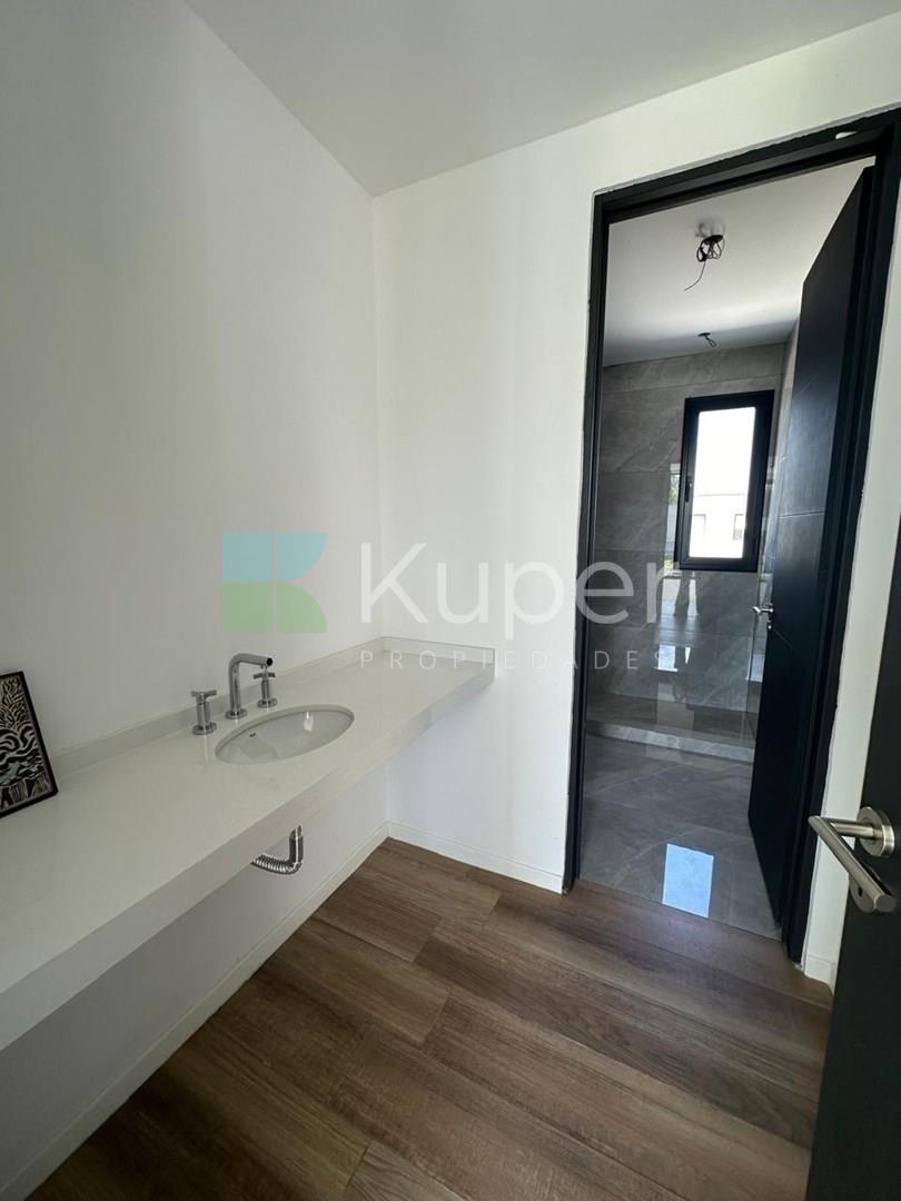 Casa a estrenar en venta en el barrio Castaños de Nordelta. Esta propiedad se encuentra en cul de sac sobre lote interno. Posee una planta muy completa: Planta Baja: Hall de acceso, escritorio, living comedor con salida a la galeria, cocina integrada con isla, family, toilette, lavadero, dormitorio con baño de servicio y placard de bajo escalera. Planta alta: Master suite con vestidor, baño y salida a la terraza, junior suite con placard y baño y 2 dormitorios mas que comparten un tercer baño. Exterior: Galeria con parrilla y bacha, pileta y jardin parquizado con riego. Caracteristicas constructivas: Aberturas DVH, pisos porcelanato, mesadas de Silestone, pre instalacion de Aire Acondicionado en todos los ambientes. Vale la pena conocerla!!! Comercializa Ernesto Marcos Spolski [CMCPSI 6855; CUCICBA 8218] Domicilios: - Blvd. del Mirador 430, Terrazas de la Bahía 2, Depto. 301, Nordelta. - Godoy Cruz 3213 - Palermo - CABA - Argentina