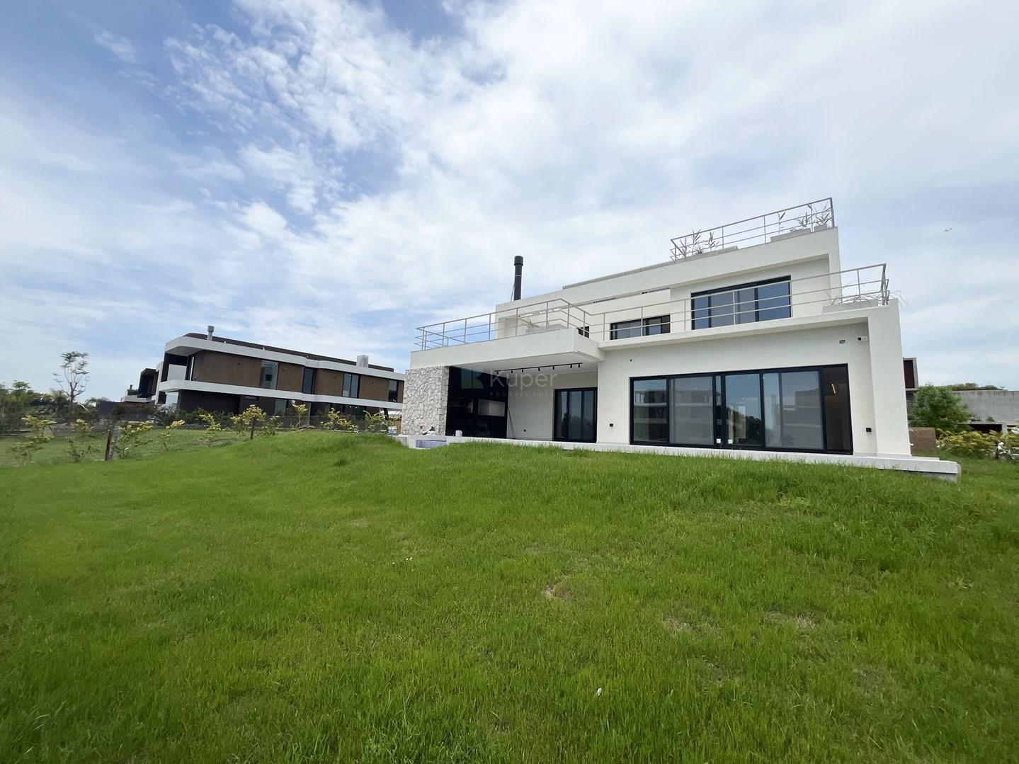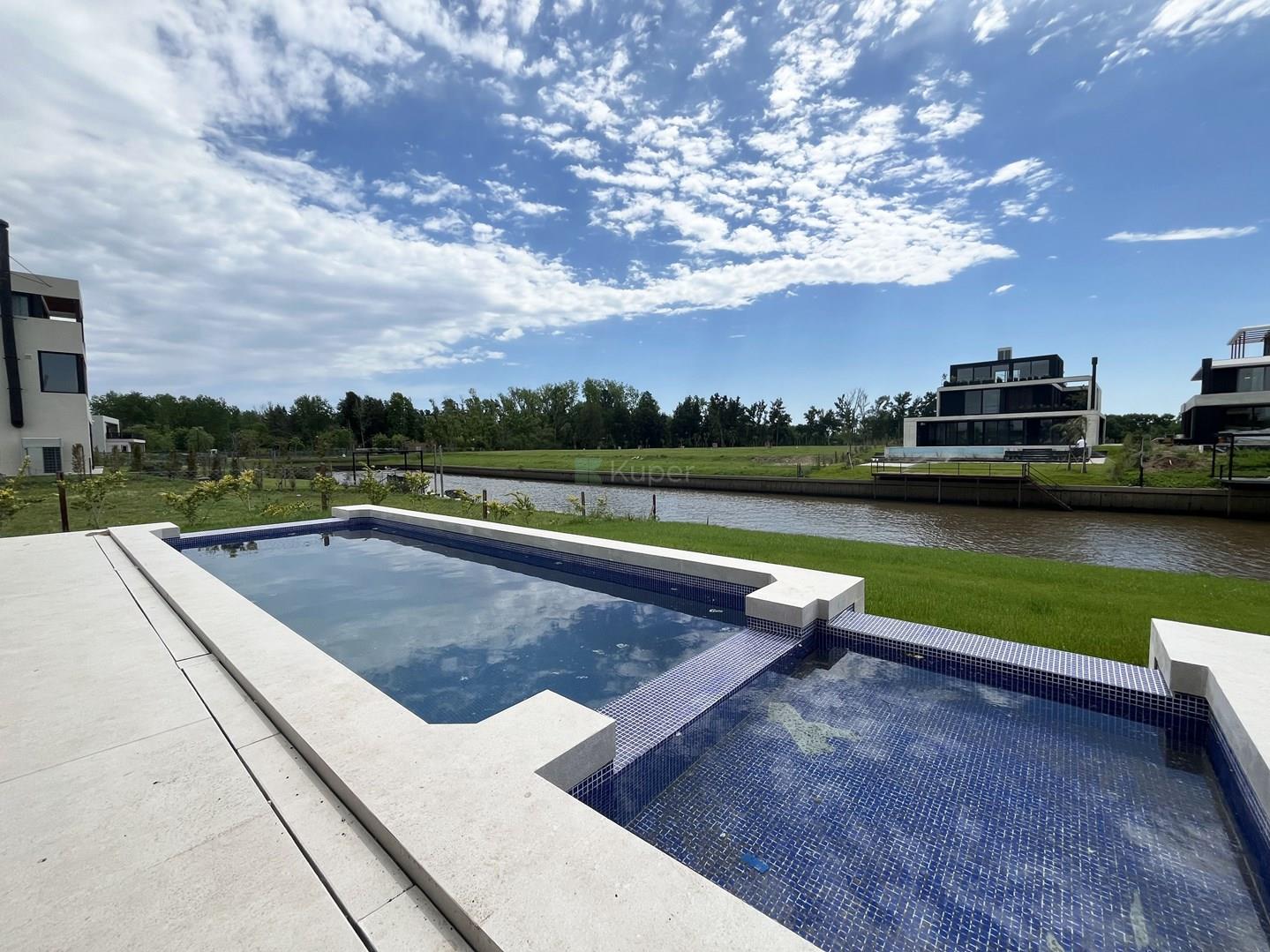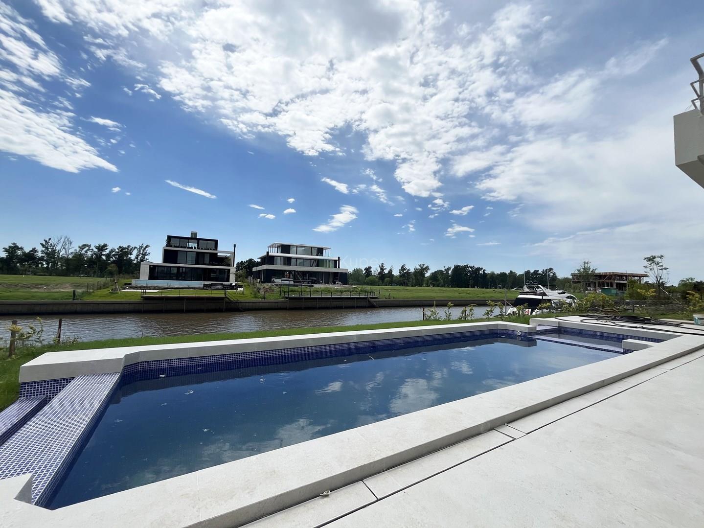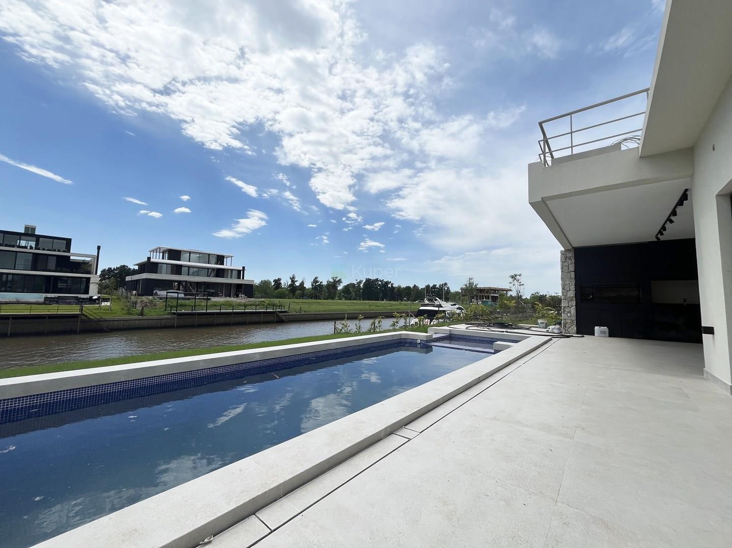 Espectacular casa en el Barrio El Yacht, Nordelta A estrenar!! Disponible desde Noviembre. Orientación Este. PLANTA BAJA: Hall de ingreso amplio con armario de recepción. Gran Living Comedor que se integra por una doble puerta a la cocina equipada con isla, doble bacha, dos heladeras y freezer doble puerta, amplio lugar de guardado en alacenas, que a su vez esta integrado a una sala de estar. La cocina cuenta con una parrilla eléctrica. Escritorio al frente. Toilette. Lavadero. Dependencia de servicio con baño con ducha y mampara. Garaje cubierto con espacio para dos autos y lugar de guardado con portón eléctrico. EXTERIOR: Galería con parrilla, bacha. Pileta y pileta mas pequeña con solárium. Baño de pileta completo con ducha. Riego automático. Vistas al rio. PRIMER PISO: Suite principal: cuenta con un espacio para escritorio, amplio baño con doble bacha, jacuzzi, box de ducha, vestidor y dormitorio con salida a una amplia terraza con vista al rio donde pueden acceder todos los dormitorios. Dos Junior Suites con vista al rio. Family amplio o 4to dormitorio con vista al frente con balcon. Un baño completo con lavarropas que sirve a las visitas del Family. SEGUNDO PISO: Amplio espacio que cuenta con un horno Pizzero, bacha, baño completo con jacuzzi para dos personas, Sauna, box de ducha. Amplia terraza con vista al rio. Aire central y calefacción por losa radiante. Comercializa Ernesto Marcos Spolski [CMCPSI 6855; CUCICBA 8218] Domicilios: - Blvd. del Mirador 430, Terrazas de la Bahía 2, Depto. 301, Nordelta. - Godoy Cruz 3213 - Palermo - CABA - Argentina