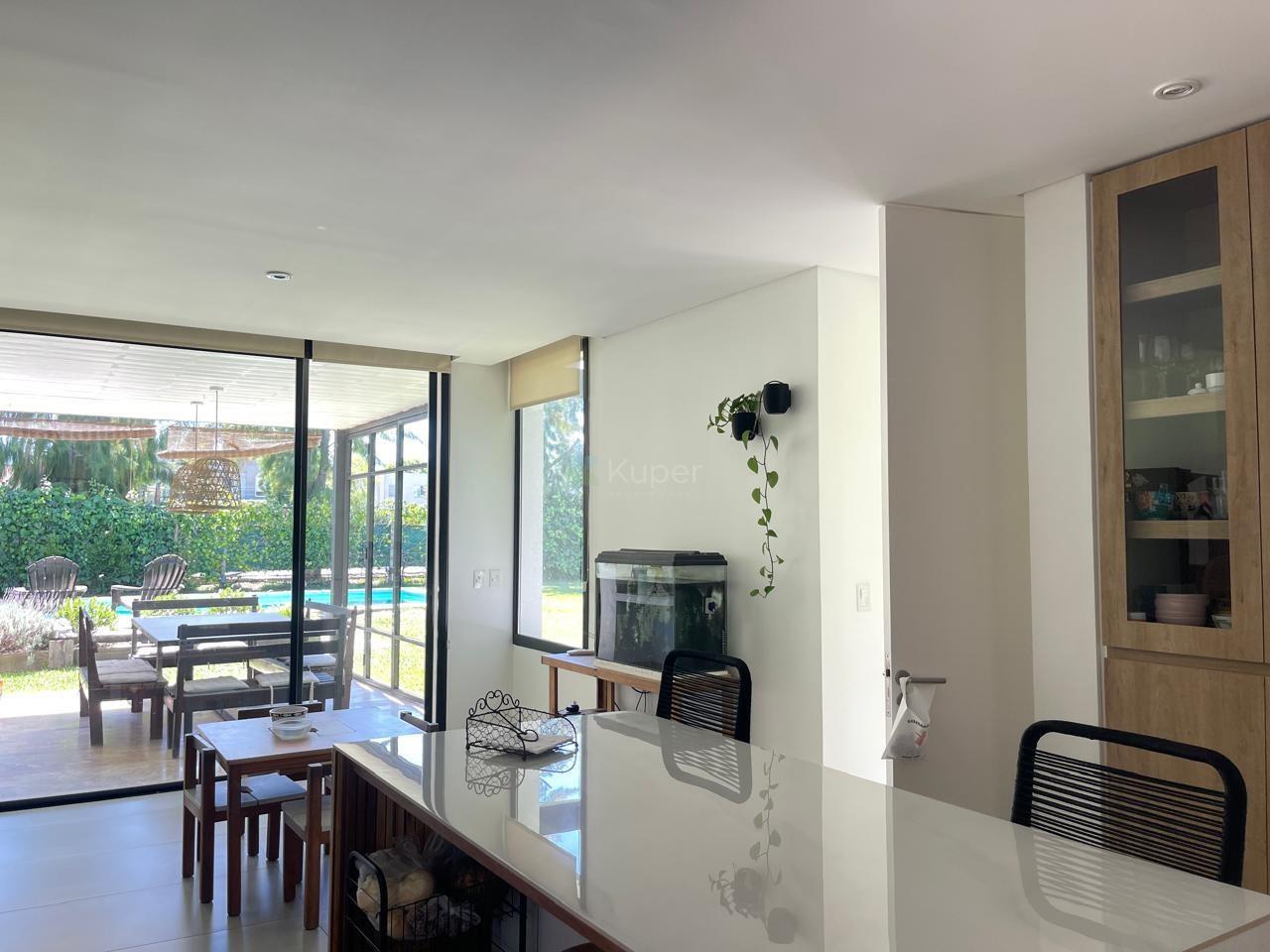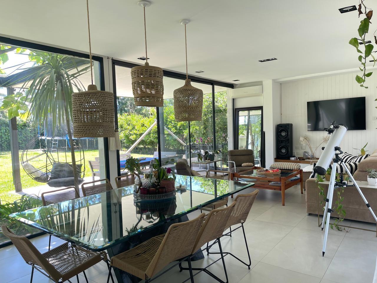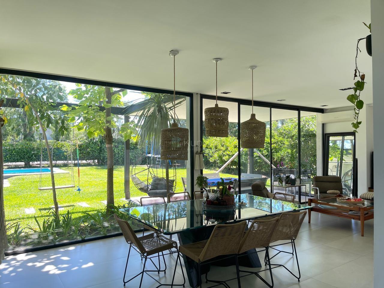 Muy linda casa, amplia y moderna desarrollada en dos plantas en el Barrio San Gabriel en Villanueva. Ya esta escriturada. Descripción: Se accede a la casa a través de un patio interno en donde la vegetación juega un papel central, con plantas tropicales y enredaderas colgantes. Hall de recepción Living comedor con ventanales de piso a techo con apertura total y vistas hacia la galeria y jardin Cocina con isla y comedor diario. Anafe y horno empotrado. Mucho lugar de guardado y sector de coffee station. Toilette de recepción Lavadero Amplio ambiente para Family/ escritorio con ventanales y salida independiente Planta alta: (4 dormitorios) Hall de distribución Dormitorio principal en suite con vestidor y baño con doble bacha y sector de ducha con mampara Dormitorio en suite con baño con ducha con mampara y walking closet 2 dormitorios mas que comparten un baño completo con bañadera. Exterior: Galería Quincho con parrilla y bacha con cerramiento lateral de aluminio. Jardín parquizado con riego automático Pileta con solárium y sector de playa húmeda Sector para guardado Sector de tender Estacionamiento para dos autos Detalles: Calefaccion por losa radiante Riego automático Aires acondicionados frio/calor en todos los ambientes Aberturas de aluminio Ventanas con doble acristalamiento (DVH) El Barrio San Gabriel, es una zona residencial ubicada en Villanueva, Tigre, que se caracteriza por su entorno tranquilo y familiar. Posee 366 lotes, 2 lagunas. Sector de juegos para niños. Seguridad las 24 hs. Está rodeado de colegios como el Santa Teresa, San Isidro Delta School, San Pablo, entre otros. Se encuentra cerca del centro comercial VEN Street, Centro comercial Nordelta, que incluye cines, locales y restaurantes, y también cuenta con el Centro Médico Villanueva. Asi como de supermercados y estaciones de servicio. Todo lo necesario a un paso. Comercializa Ernesto Marcos Spolski [CMCPSI 6855; CUCICBA 8218] Domicilios: - Blvd. del Mirador 430, Terrazas de la Bahía 2, Depto. 301, Nordelta. - Godoy Cruz 3213 - Palermo - CABA - Argentina . . Las medidas, superficies y demás especificaciones consignadas en el presente aviso tienen carácter meramente estimativo y orientativo. Los valores definitivos surgirán de la correspondiente Escritura Traslativa de Dominio. Asimismo, las descripciones arquitectónicas, montos de expensas, tributos, servicios, imágenes y dimensiones de los inmuebles han sido suministrados por la parte propietaria, pudiendo no encontrarse actualizados al momento de la presente publicación, motivo por el cual podrían verificarse inexactitudes o divergencias respecto de los que resulten de las facturas, títulos o planos registrados del inmueble hasta el momento. Se deja expresamente establecido que la documentación necesaria será puesta a disposición de los interesados, quienes deberán efectuar las verificaciones pertinentes con anterioridad a la celebración de cualquier operación, ya sea por sí o a través de los profesionales que designen, requiriendo la documentación respaldatoria que corresponda.