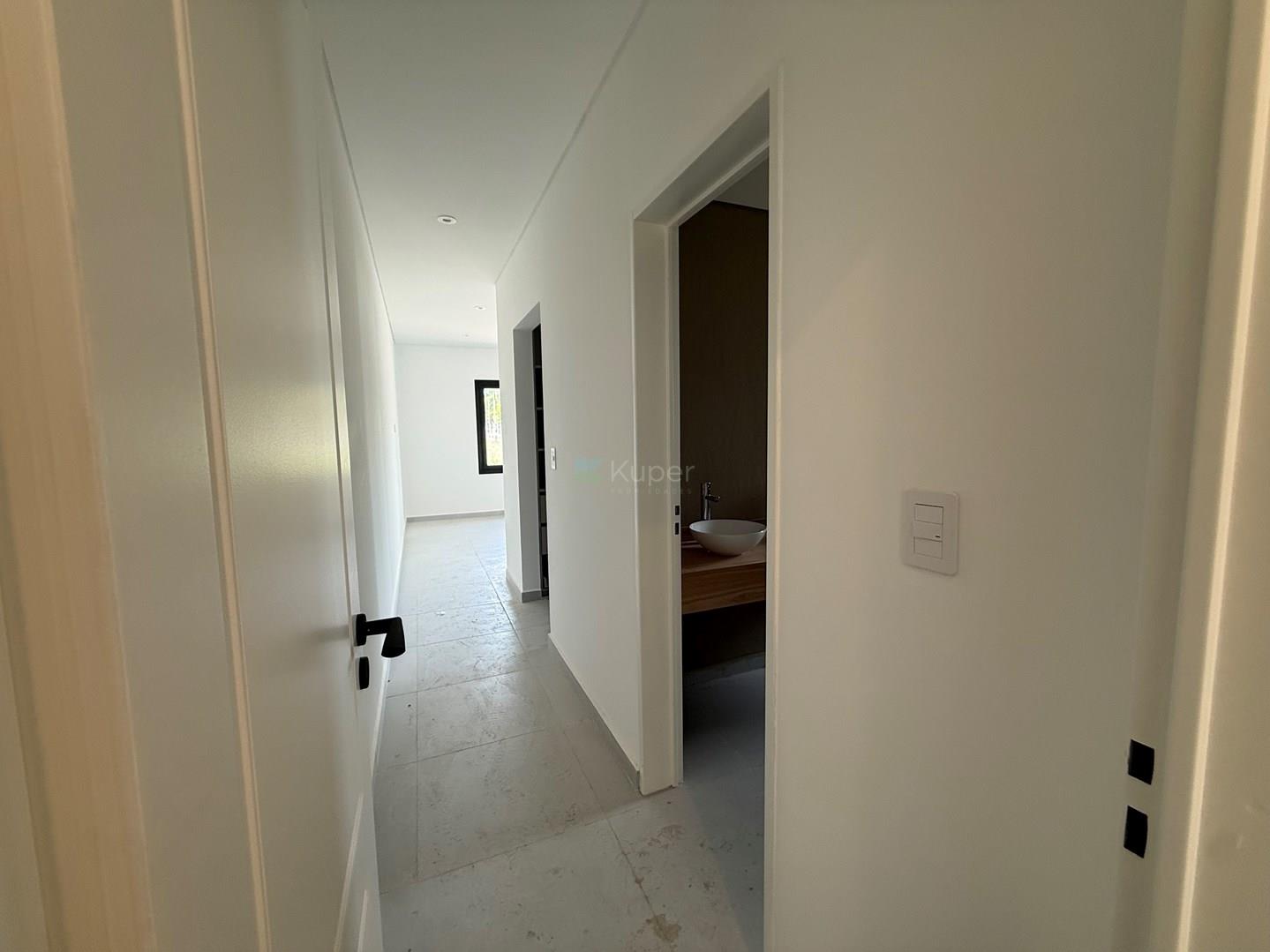 CASA DESARROLLADA EN 1 PLANTA SOBRE LOTE EN CUL DE SAC DE 597 M2 PERÍMETRO A OTRO BARRIO DESCRIPCIÓN DE AMBIENTES: * Al ingresar nos encontramos con un Hall de recepción. * a su Derecha se encuentra un cuarto Escritorio/ playroom * Toilette de recepción. * Cocina con anafe y horno separados, con mesada color negro o similar con bajo y alta alacena. *Luminoso living comedor con salida a la galería. * Lavadero con ingreso del exterior que se conecta a la cocina. * 2 dormitorios con placard y grandes ventanales. * baño completo con ducha. * 1 dormitorios en suite con vestidor y baño con ducha y bacha doble. Exterior: *Galería con parrilla, mesada con bacha. *Jardín *Espacio para estacionar vehículos. NO INCLUYE PILETA ( SOLO EN PLANO) CONSTRUIDOS; 153 DETALLES CONSTRUCCIÓN: Calefacción por losa radiante. Aberturas DVH color negras. Pisos de porcelanato pulidos lote en cul de sac perimetral Asesor inmobiliario Marisol Fullana Comercializa Inmobiliaria Kuper Propiedades, corredor inmobiliario Ernesto Marcos Spolski, Matrícula CMCPSI 6855, CUCIBA 8218 Comercializa Ernesto Marcos Spolski [CMCPSI 6855; CUCICBA 8218] Domicilios: - Blvd. del Mirador 430, Terrazas de la Bahía 2, Depto. 301, Nordelta. - Godoy Cruz 3213 - Palermo - CABA - Argentina . . Las medidas, superficies y demás especificaciones consignadas en el presente aviso tienen carácter meramente estimativo y orientativo. Los valores definitivos surgirán de la correspondiente Escritura Traslativa de Dominio. Asimismo, las descripciones arquitectónicas, montos de expensas, tributos, servicios, imágenes y dimensiones de los inmuebles han sido suministrados por la parte propietaria, pudiendo no encontrarse actualizados al momento de la presente publicación, motivo por el cual podrían verificarse inexactitudes o divergencias respecto de los que resulten de las facturas, títulos o planos registrados del inmueble hasta el momento. Se deja expresamente establecido que la documentación necesaria será puesta a disposición de los interesados, quienes deberán efectuar las verificaciones pertinentes con anterioridad a la celebración de cualquier operación, ya sea por sí o a través de los profesionales que designen, requiriendo la documentación respaldatoria que corresponda.