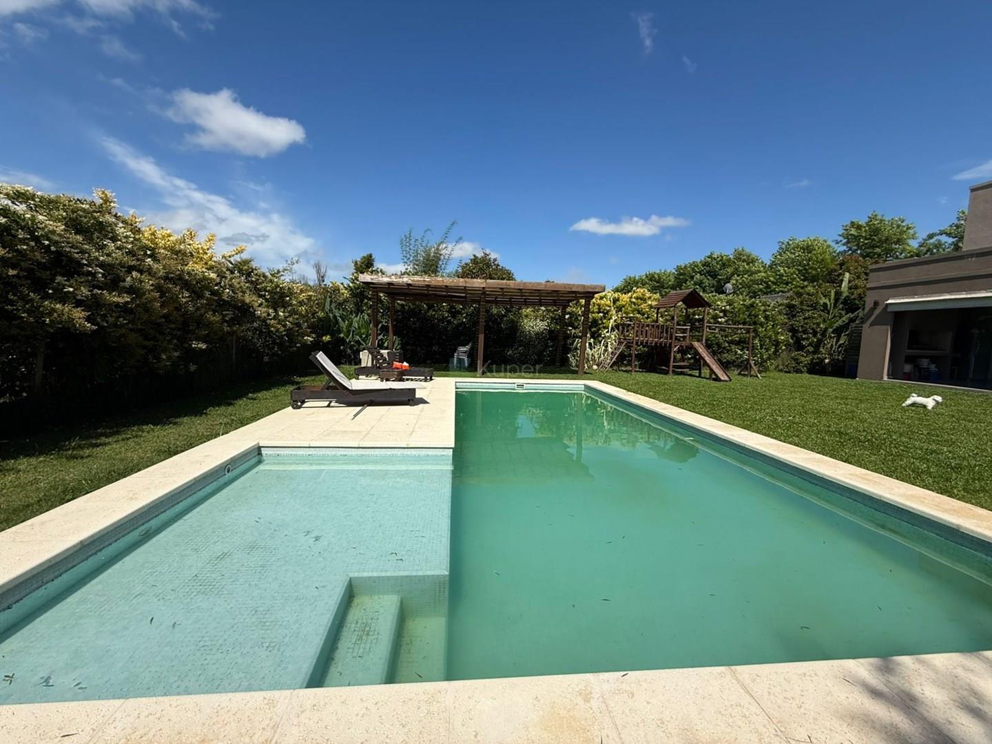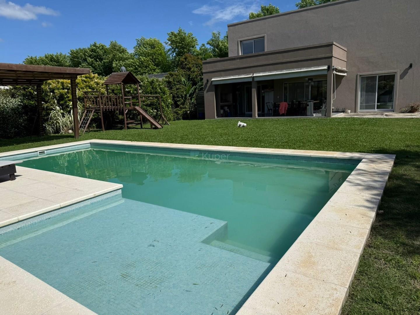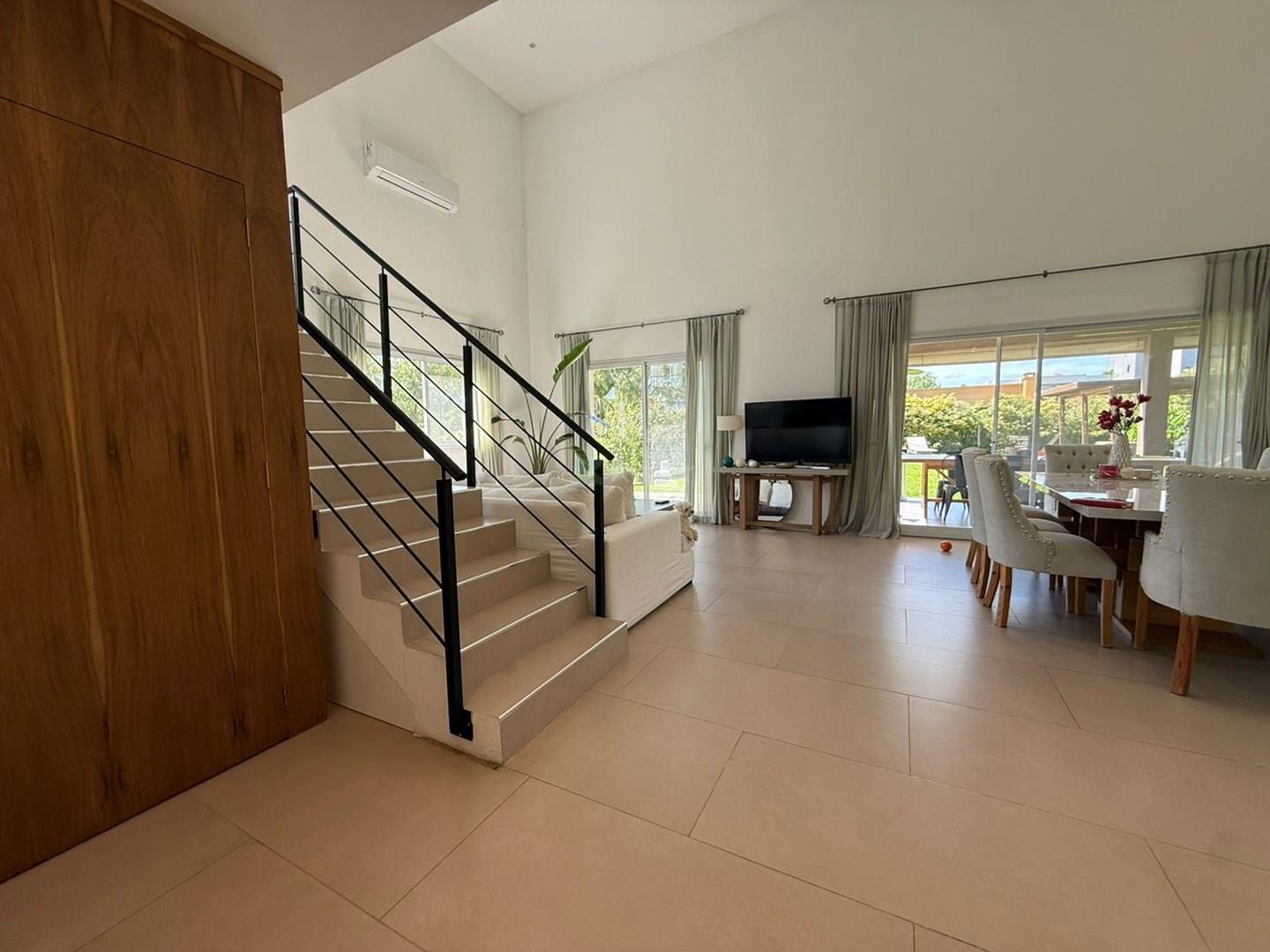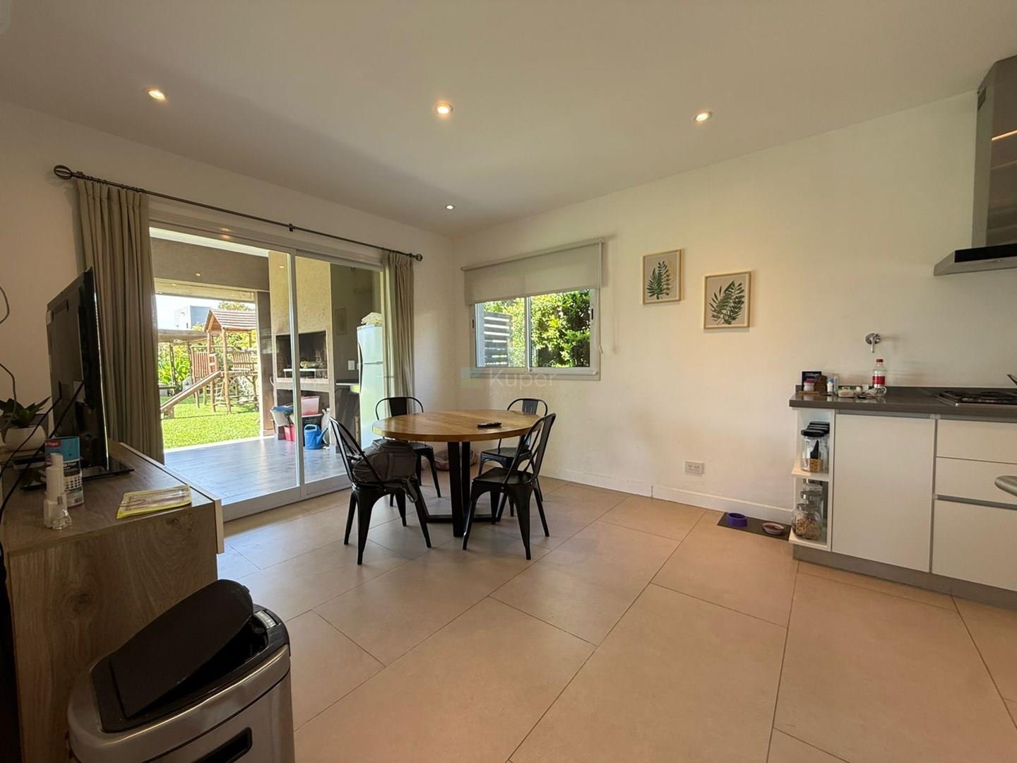 CASA EN VENTA - BARRIO SANTA GUADALUPE, PILAR DEL ESTE. EL BARRIO MÁS BUSCADO POR SU ARBOLEDA AÑOSA Lote en esquina y ubicación interna central. Excelente casa de 2 pisos, con doble altura ingresando mucha luz natural. Estilo moderno Descripcion: PB: *hall de entrada, * Sector de playroom/ escritorio amplio o posible cuarto. con mucho ventanal con vista al frente y costado de la casa. * 1 Cuarto con placard completo. A/A frio/ calor . Ventana vista al frente. * Amplio living comedor con vista a la galería. A/A frio/ calor. * Toilette de recepción. *Lugar de guardado en bajo escalera con puerta. * cocina con comedor diario, salida a la galeria. A/A frio/ calor. * Lavadero con acceso desde la cocina y exterior garage. * Galería cubierta con Parrilla. PA: * pasillo que conecta las 3 habitaciones con vista al living comedor de la casa donde ingresa mucha luz natural. * 1 dormitorio en suite con vestidor y baño completo con ducha. A/A frio/ calor. *2 dormitorios complementarios de grandes dimensiones con placard completo de pared a techo con material de calidad. A/A frio/ calor * 1 baño completo con bañera que asiste a los 2 dormitorios. Exterior: *Amplio jardín con grama bahiana. *Riego por aspersión. *Pileta de 9 x 3,5 con playa humeda de venecitas.. Ubicada estratégicamente de manera que el jardín tiene mucho espacio verde. * Deck para pasar los dias de verano junto a la pileta. La pileta tiene el sistema de climatizador solar que mantiene el agua a temperatura en verano para que no esté fría. Calidad constructiva Pisos de porcelanato A/A frio calor en todos sus ambientes Ventanas DVH color blancas Ingreso para 4 autos Lote grande de 6,96 mrts. Asesor inmobiliario Marisol Fullana Cormercializa Inmobiliaria Kuper Propiedades, corredor inmobiliario Ernesto Marcos Spolski, Matrícula CMCPSI 6855, CUCIBA 8218 Toda la información, descripción y medidas del anuncio son aproximadas y orientativas, y las mismas han sido proporcionadas por el propietario y deberá ratificarse con la documentación pertinente, las fotografías no son vinculantes ni contractuales, en caso de necesitarlo puede solicitar información más detallada a nuestra empresa en la cual estaremos a su entera disposición a través de todos nuestros contactos y canales de comunicación. Comercializa Ernesto Marcos Spolski [CMCPSI 6855; CUCICBA 8218] Domicilios: - Blvd. del Mirador 430, Terrazas de la Bahía 2, Depto. 301, Nordelta. - Godoy Cruz 3213 - Palermo - CABA - Argentina . . Las medidas, superficies y demás especificaciones consignadas en el presente aviso tienen carácter meramente estimativo y orientativo. Los valores definitivos surgirán de la correspondiente Escritura Traslativa de Dominio. Asimismo, las descripciones arquitectónicas, montos de expensas, tributos, servicios, imágenes y dimensiones de los inmuebles han sido suministrados por la parte propietaria, pudiendo no encontrarse actualizados al momento de la presente publicación, motivo por el cual podrían verificarse inexactitudes o divergencias respecto de los que resulten de las facturas, títulos o planos registrados del inmueble hasta el momento. Se deja expresamente establecido que la documentación necesaria será puesta a disposición de los interesados, quienes deberán efectuar las verificaciones pertinentes con anterioridad a la celebración de cualquier operación, ya sea por sí o a través de los profesionales que designen, requiriendo la documentación respaldatoria que corresponda.
