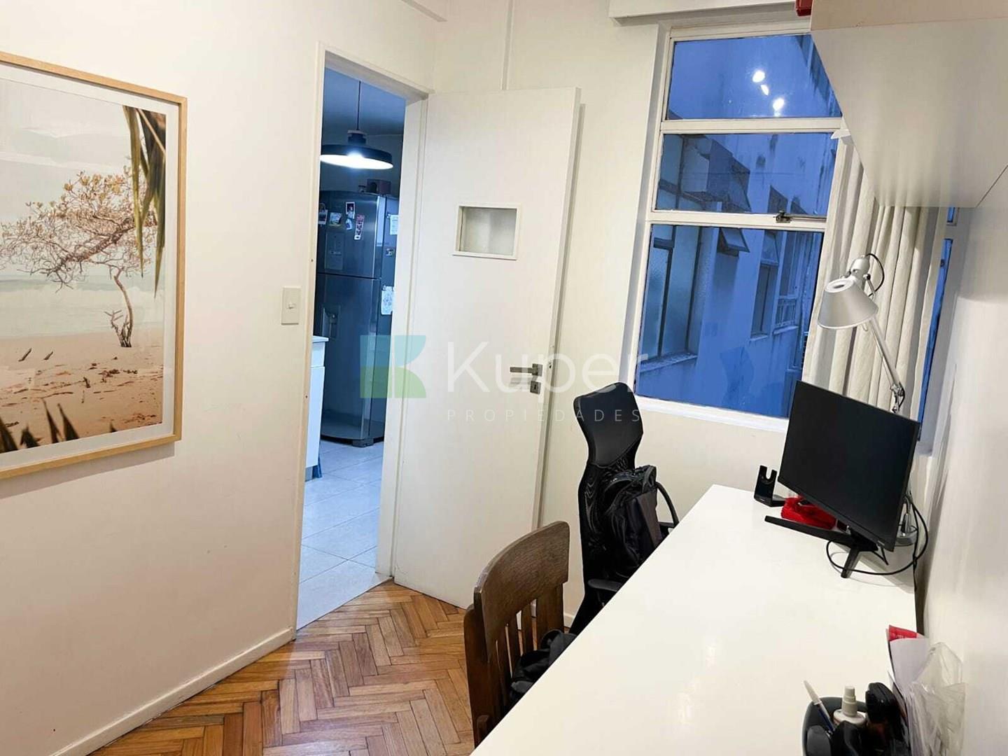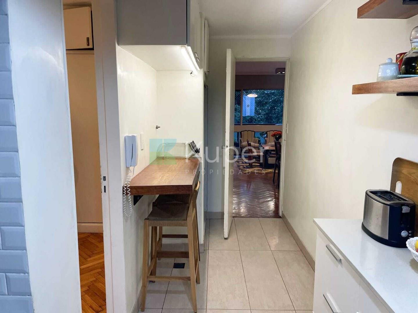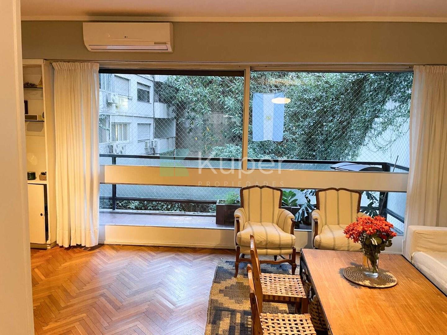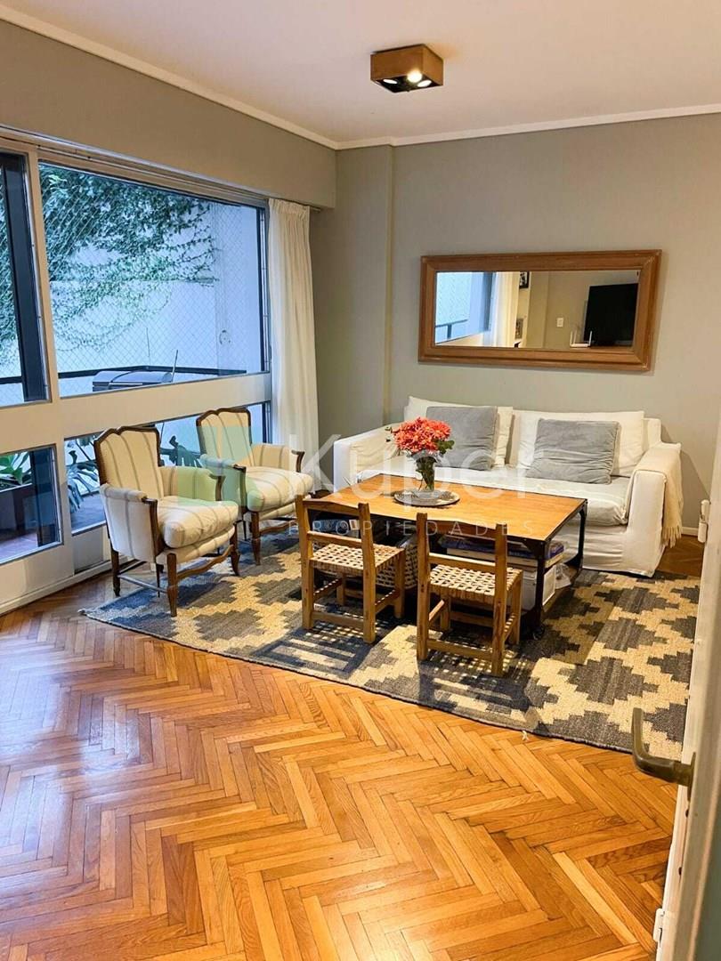 Impecable departamento en venta en el corazón de Barrio Norte. Ubicado en un edificio tradicional, cuenta con 83 metros totales distribuidos en 4 ambientes. Living-comedor cómodo y espacioso con vistas al balcón, cocina completamente equipada con muy buena ventilación, lavadero, escritorio y toilette de recepción. Cuenta con 2 dormitorios que comparten un baño principal, ambos con placares con generoso espacio de guardado. Calefacción por losa radiante Pisos de parquet de madera Entrada de servicio Aire frío calor en el living