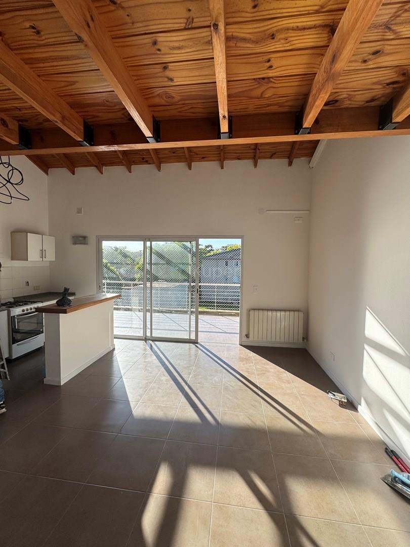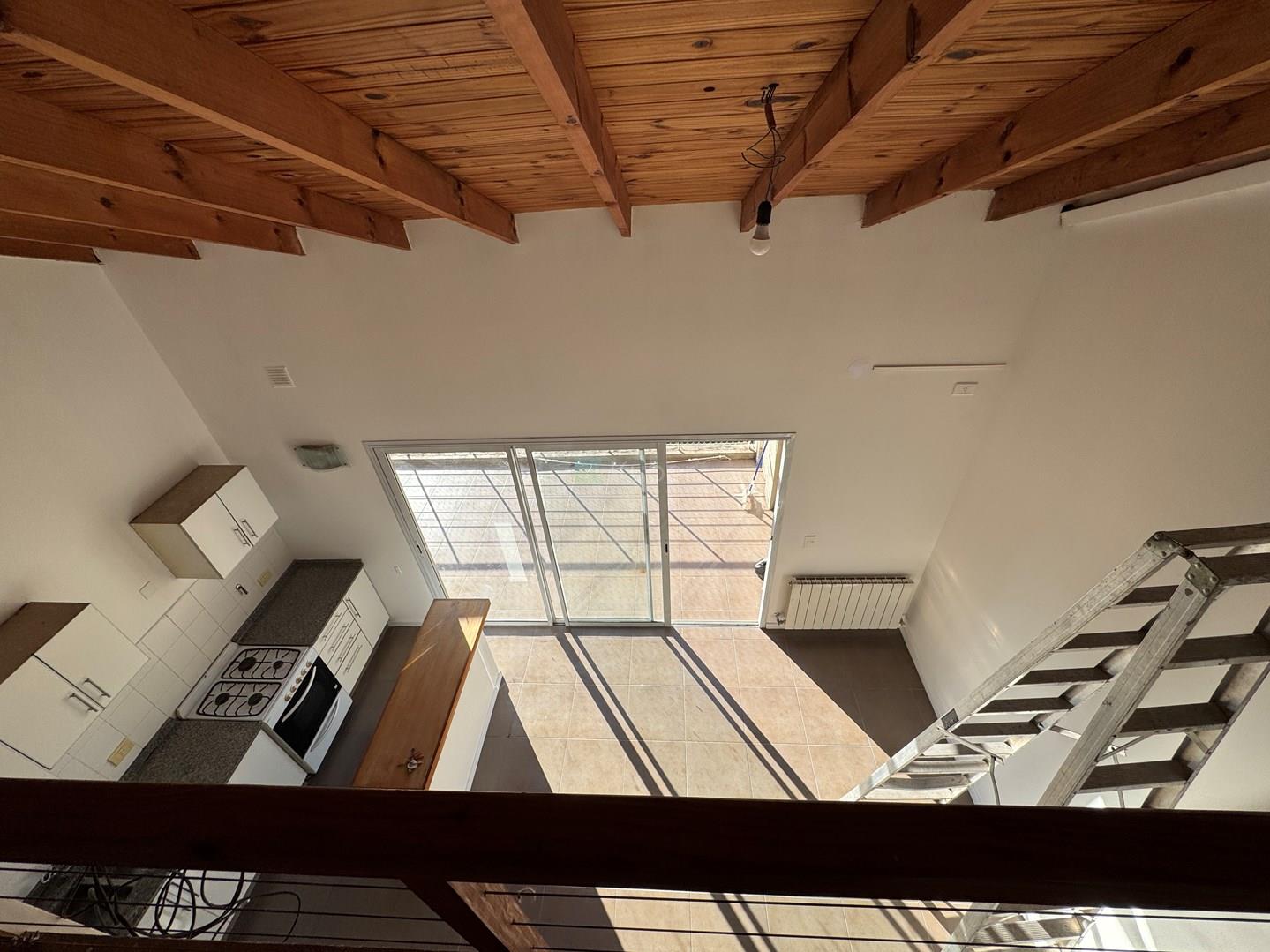 Living comedor con cocina integrada. Entrepiso que balcones sobre el living para armar un tercer dormitorio o un escritorio o estar.