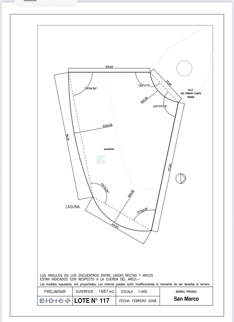 Exclusivo lote a la laguna en San Marco – Villa Nueva Imponente lote de 1687 mtrs, con una de las mejores vistas abiertas a la laguna. OPORTUNIDAD!!! Villa Nueva se destaca por su excelente ubicación: a solo 15 minutos del centro de Tigre, a 2 km de Panamericana ramal Escobar y a 35 km de Capital Federal. Posee múltiples accesos, tanto por calle La Bota como por Acceso Tigre, a través del Camino de los Remeros, Ruta 27 y Boulevard Todos los Santos. El barrio cuenta con una cancha de sintetico de futbol 5 y juegos infantiles. CONTACTANOS PARA VISITARLO! Comercializa Ernesto Marcos Spolski [CMCPSI 6855; CUCICBA 8218] Domicilios: - Blvd. del Mirador 430, Terrazas de la Bahía 2, Depto. 301, Nordelta. - Godoy Cruz 3213 - Palermo - CABA - Argentina . . Las medidas, superficies y demás especificaciones consignadas en el presente aviso tienen carácter meramente estimativo y orientativo. Los valores definitivos surgirán de la correspondiente Escritura Traslativa de Dominio. Asimismo, las descripciones arquitectónicas, montos de expensas, tributos, servicios, imágenes y dimensiones de los inmuebles han sido suministrados por la parte propietaria, pudiendo no encontrarse actualizados al momento de la presente publicación, motivo por el cual podrían verificarse inexactitudes o divergencias respecto de los que resulten de las facturas, títulos o planos registrados del inmueble hasta el momento. Se deja expresamente establecido que la documentación necesaria será puesta a disposición de los interesados, quienes deberán efectuar las verificaciones pertinentes con anterioridad a la celebración de cualquier operación, ya sea por sí o a través de los profesionales que designen, requiriendo la documentación respaldatoria que corresponda.